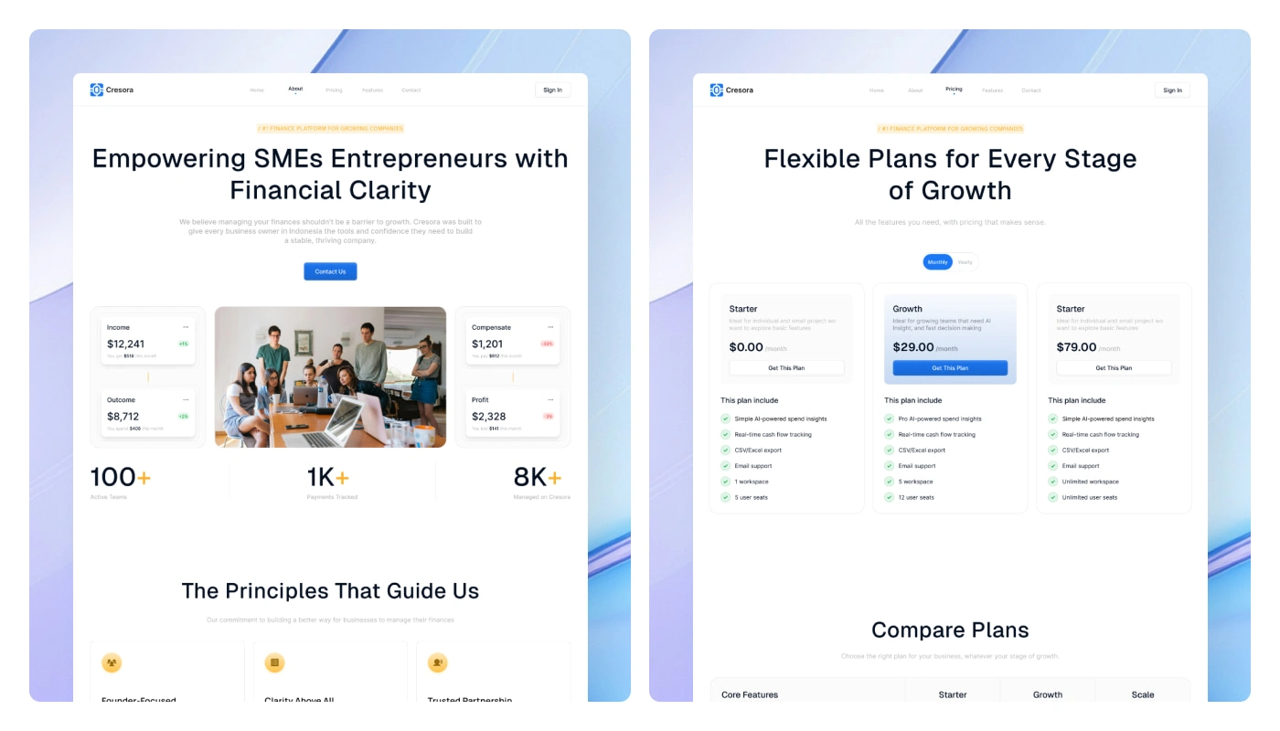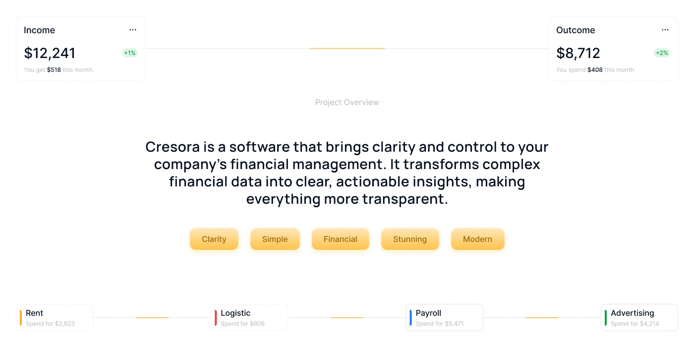 Cresora (Cres = growth, ora = system/time) is a software to bring clarity and control to your company's financial management.