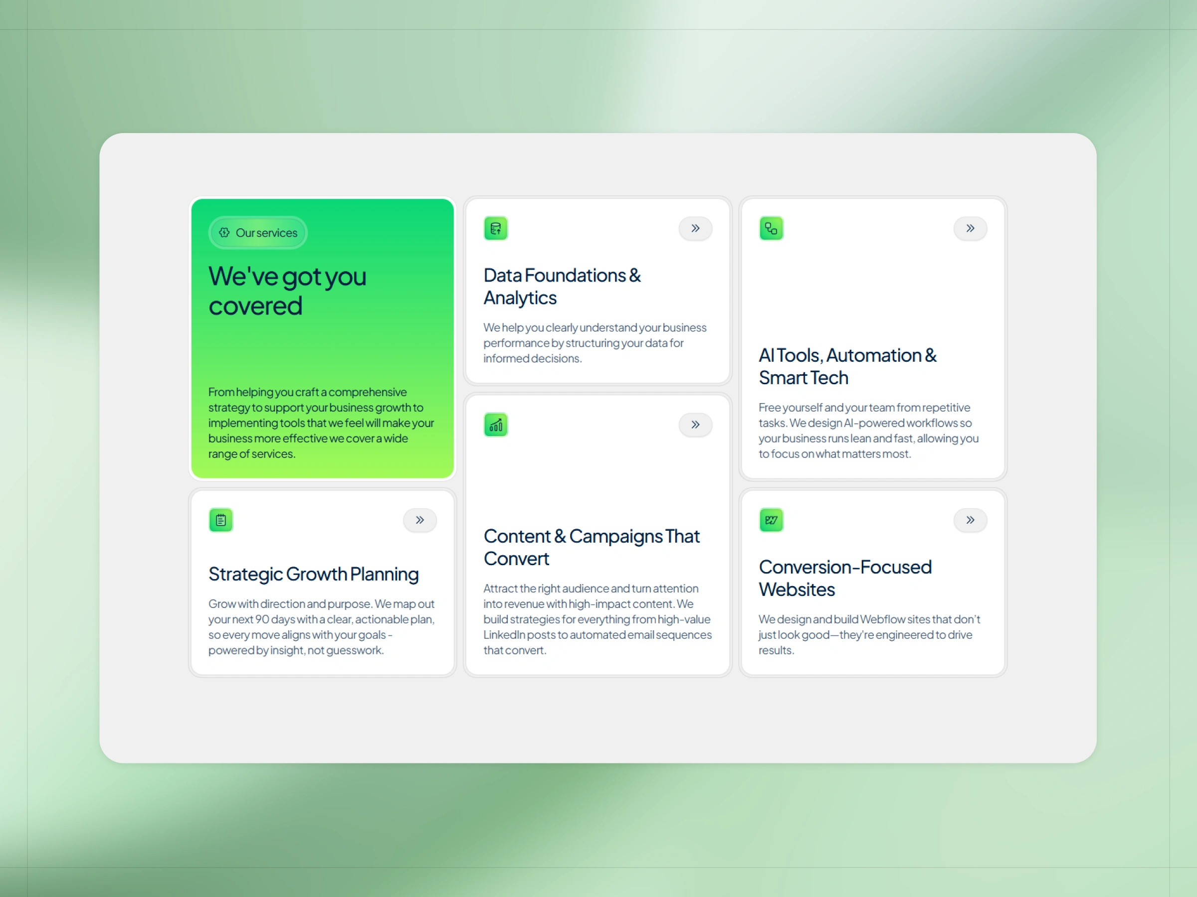 I built everything in Webflow using a component-based system and CMS, so they can easily update service pages, add case studies, or publish new insights without touching code. The focus was on clarity, structure, and conversion — turning their strategic expertise into a web experience that actually generates leads.