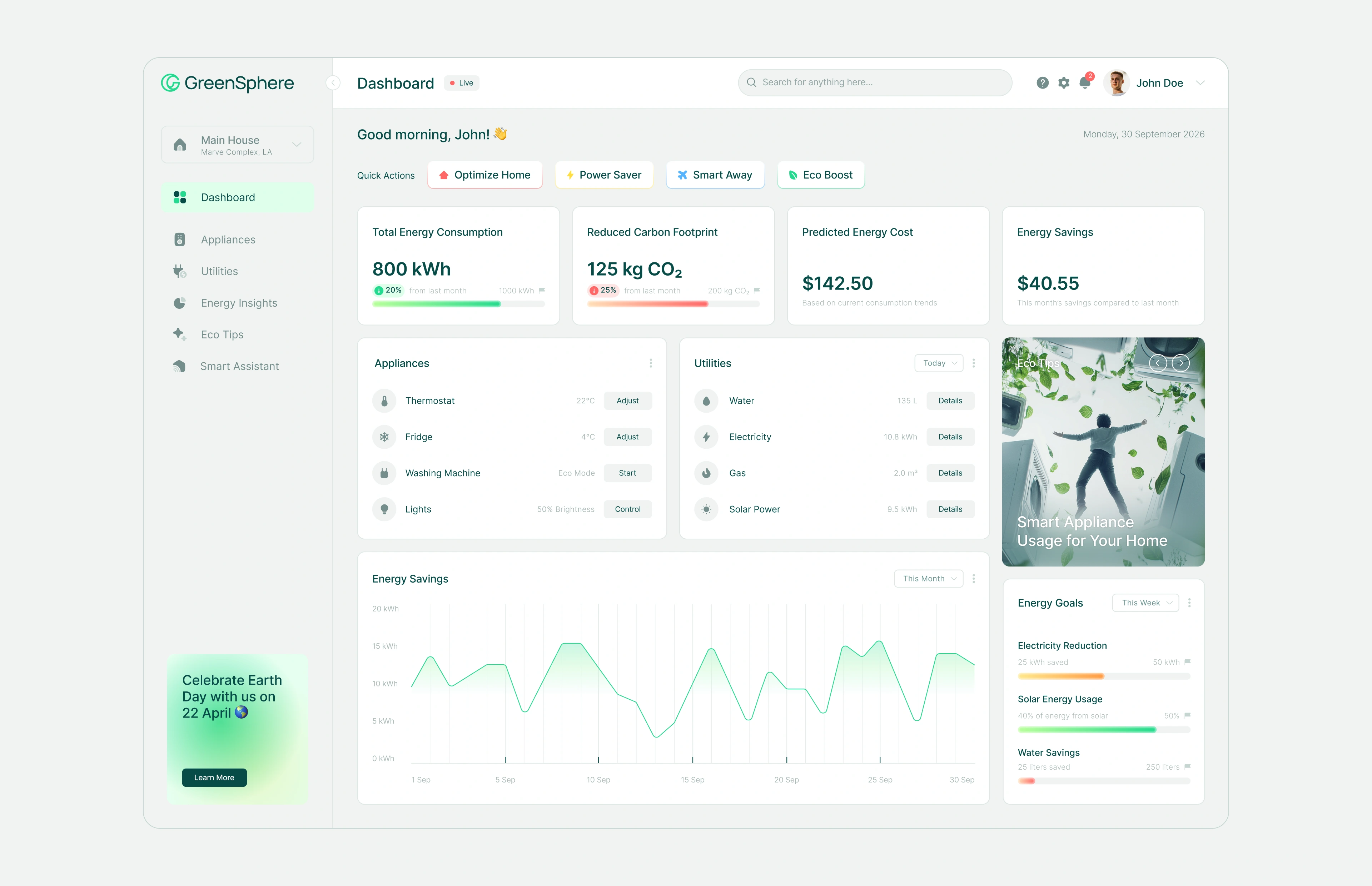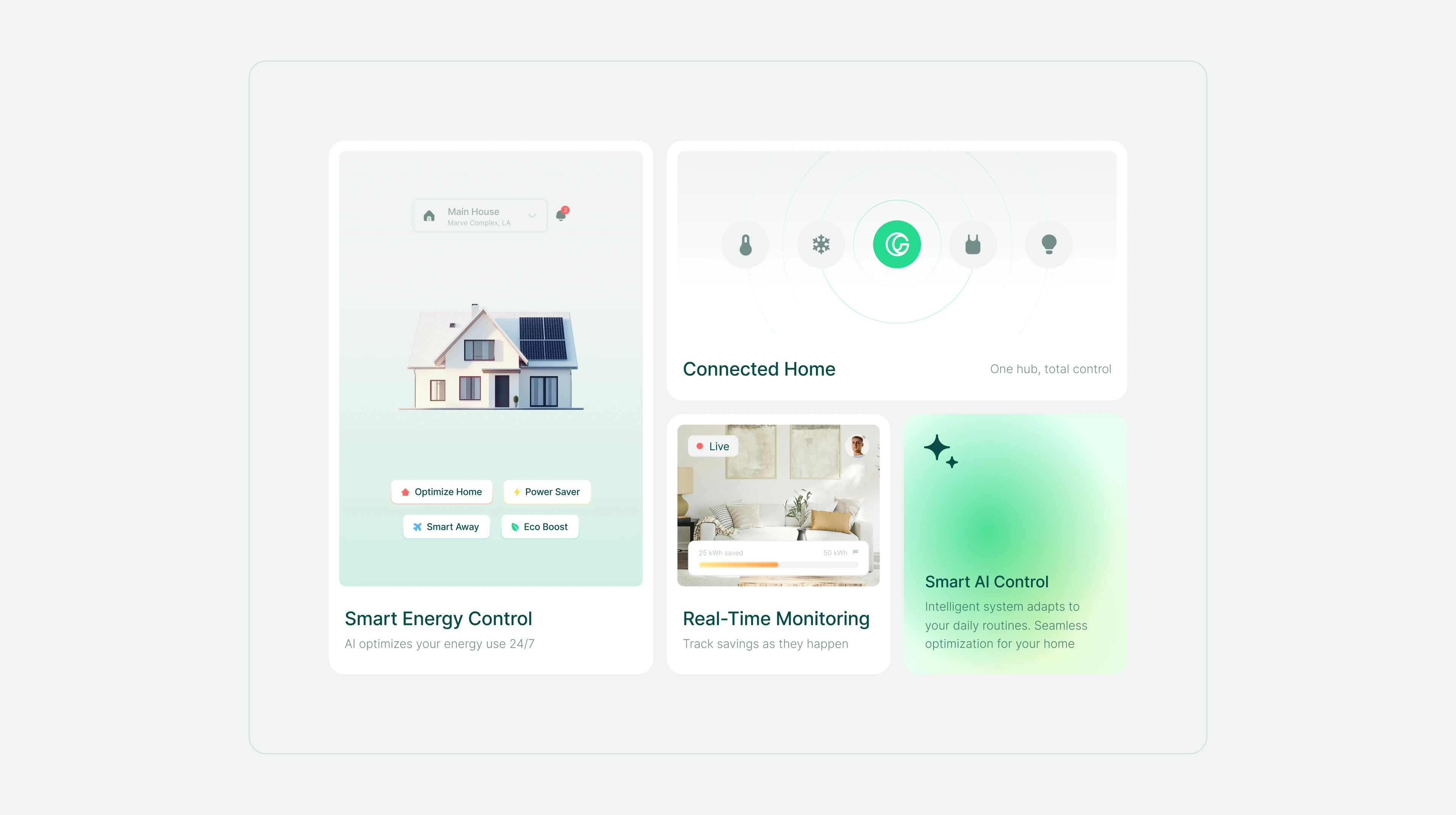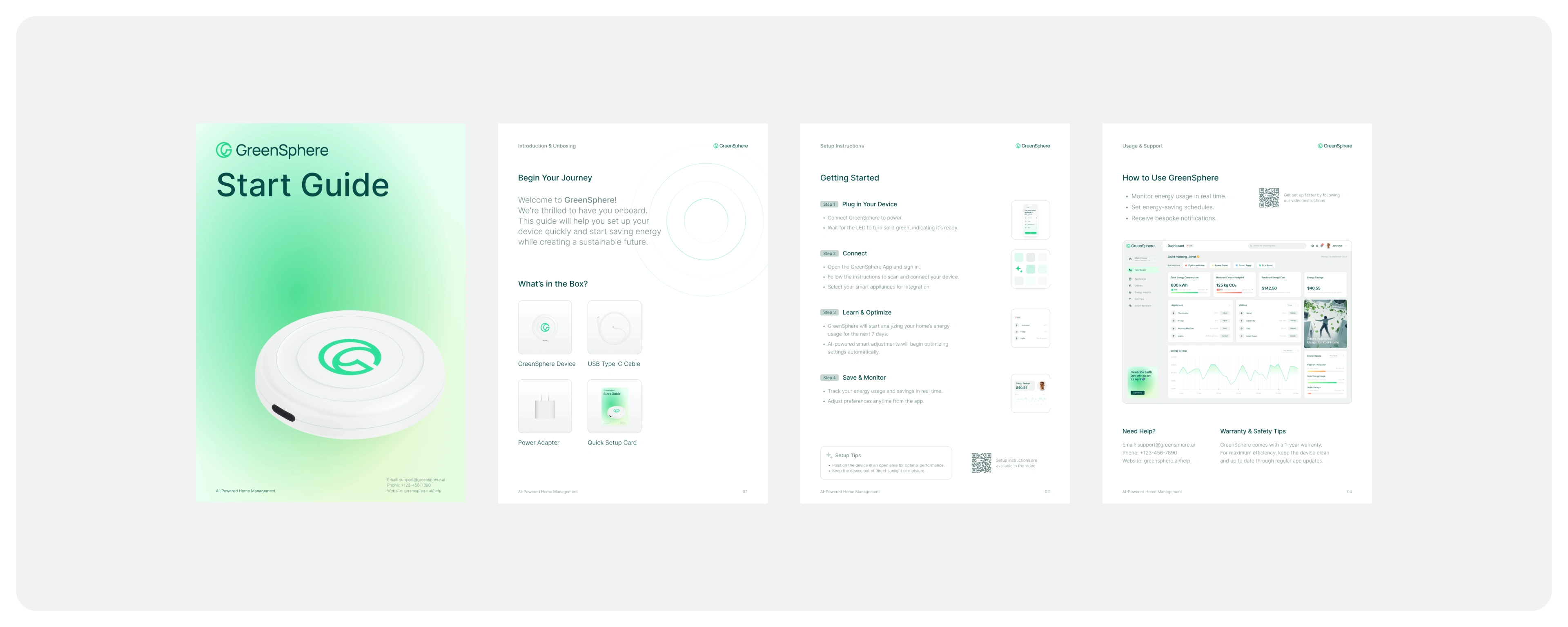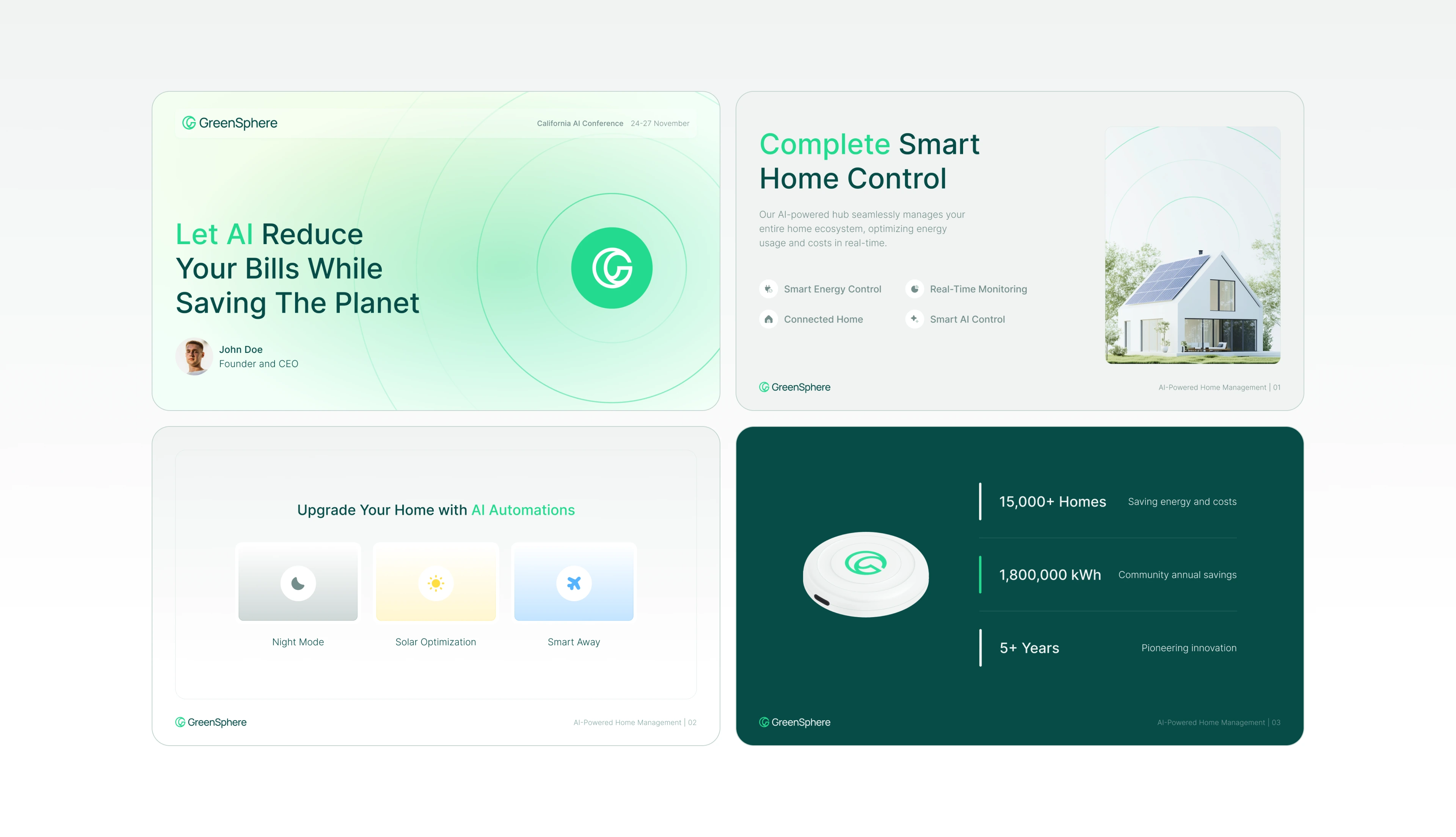 A complete brand identity and digital experience for GreenSphere, an AI-powered smart home system focused on sustainability.