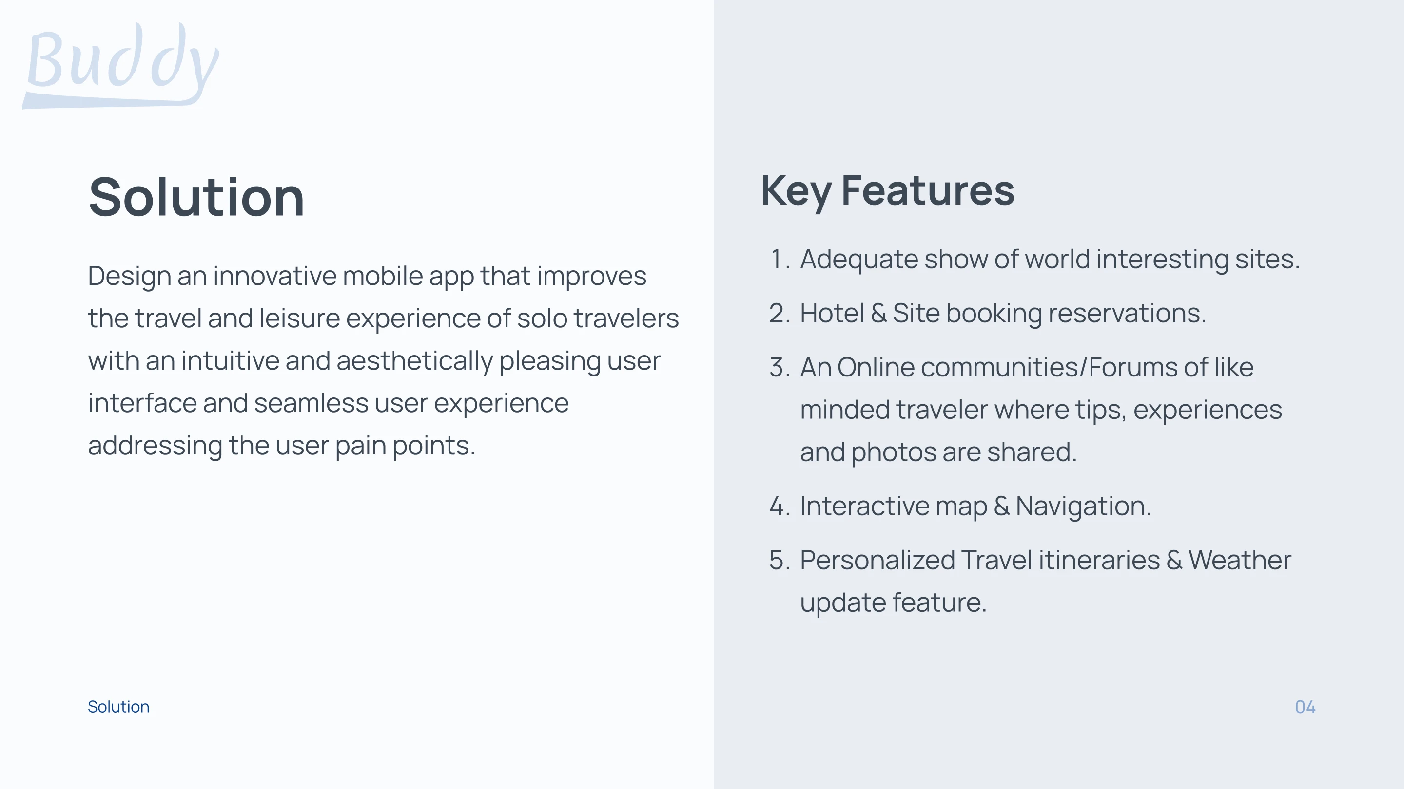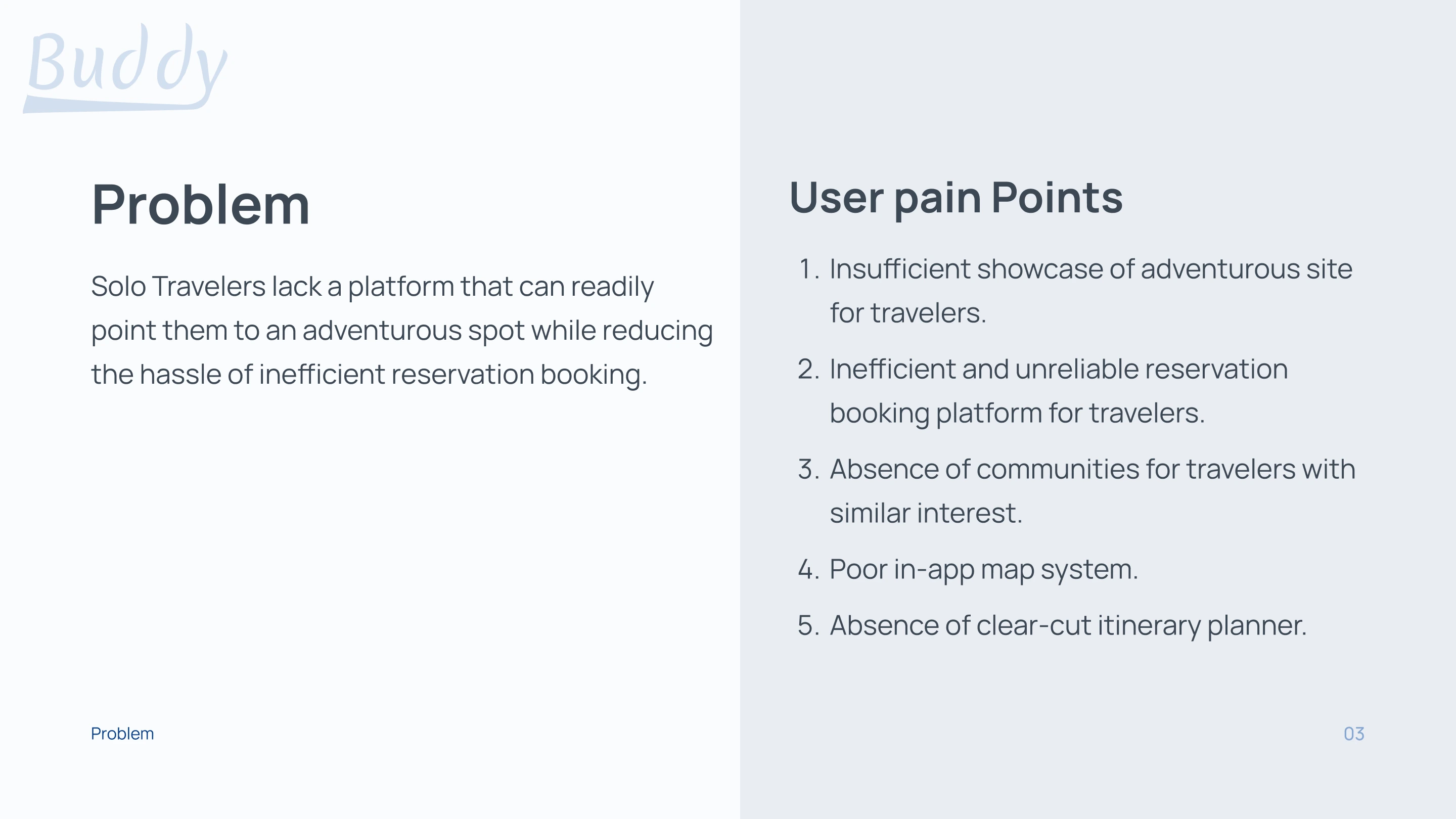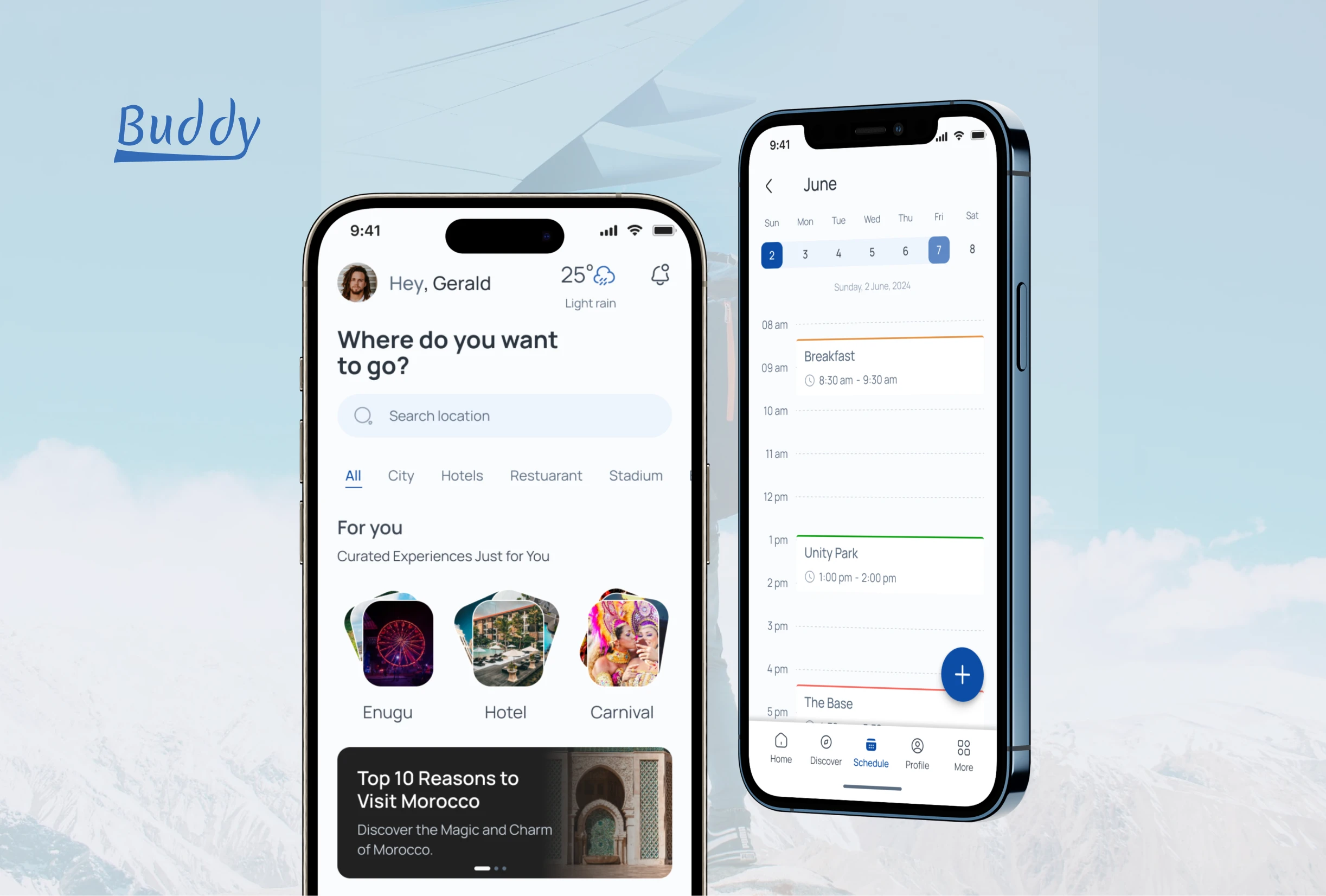 Buddy is a mobile app that aims to enhance travellers' experience by providing easy hotel booking, vacation site reservation and itineraries documentation.
