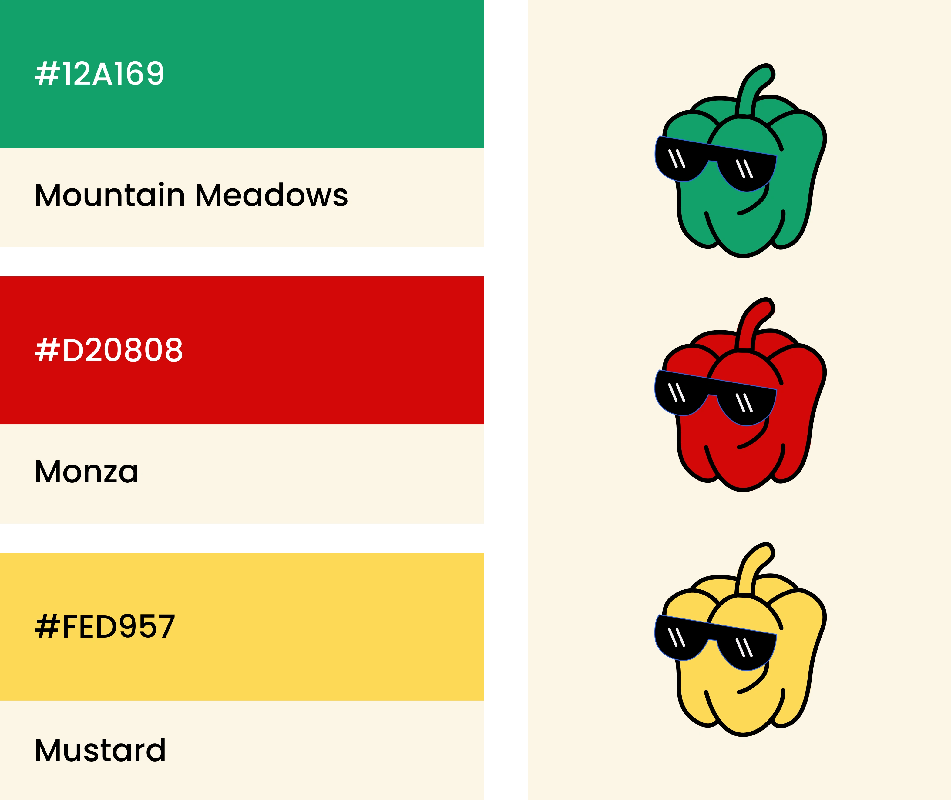 Using red, green, and yellow, the brand captures the natural vibrancy found in everyday vegetables. These colors are: