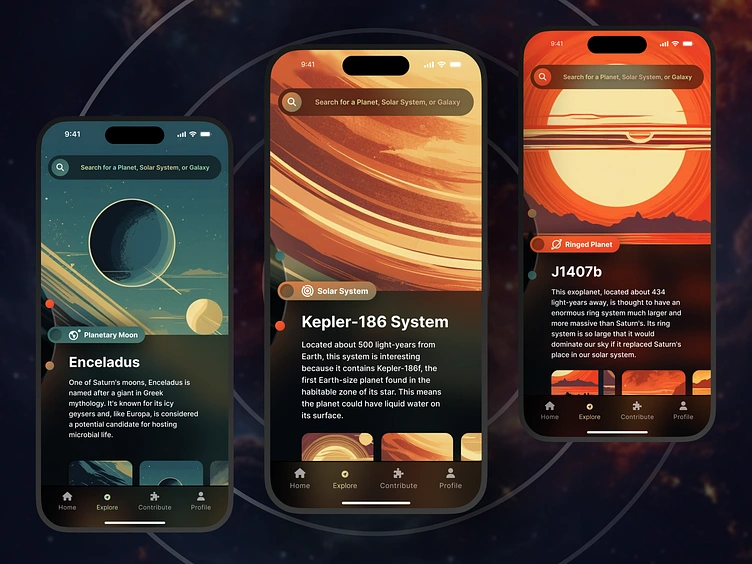 What if there was an application that let curious minds explore the space around us? That is what I designed in this exercise! Using space poster images I generated in MidJourney, I created a vision for something graphically heavy, and visually interesting, but still usable and intuitive. While this is just a concept, I would personally love to see something like it in the app stores!