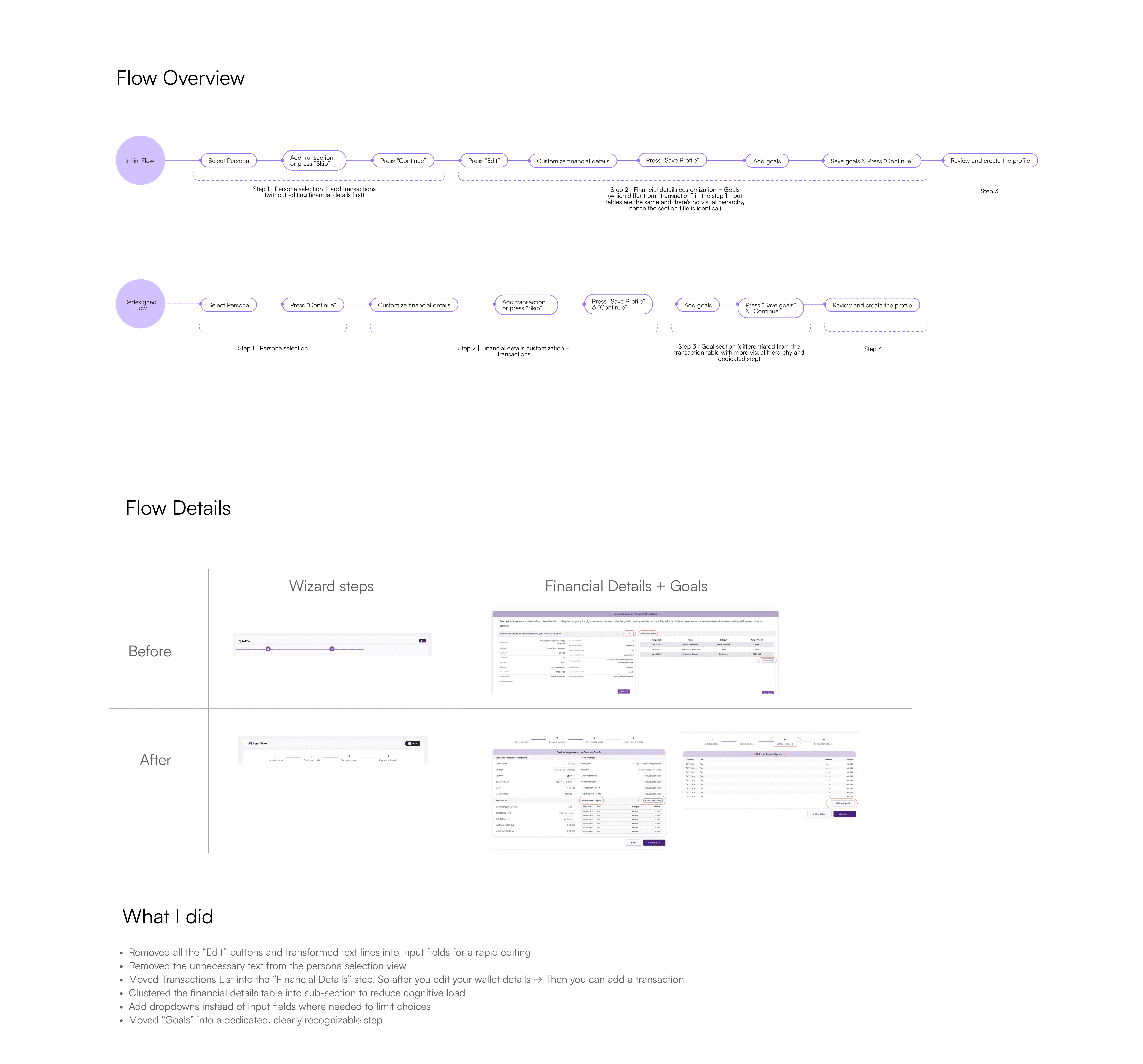 We worked on some existing features of the main product, which is web-based. One of these was the persona catalog feature. To give you some context, users could select one of the predefined financial profiles (personas) that most closely matched their own, customize it, and use it as a basis for building their own financial planner.