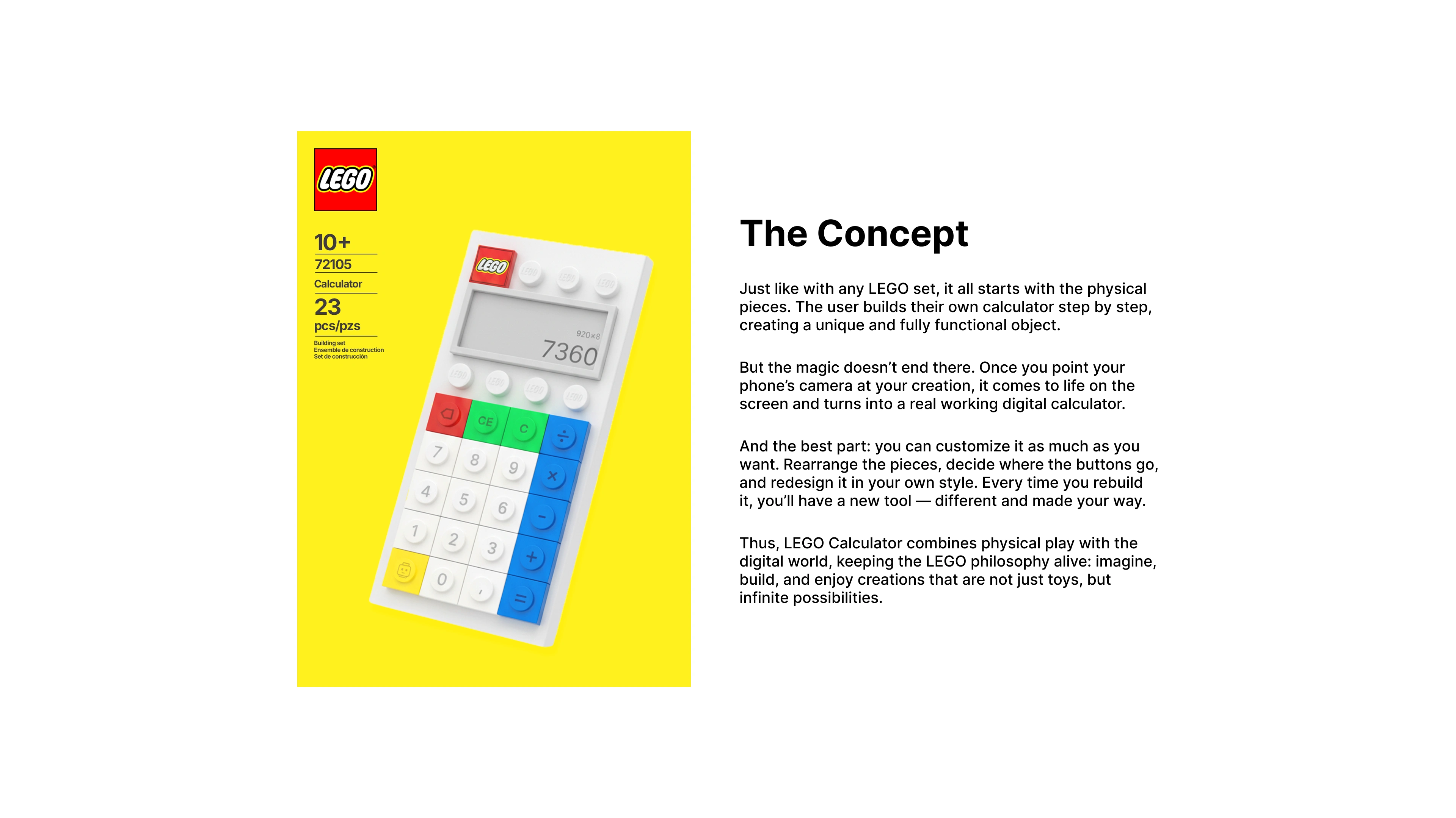 LEGO Calculator building set & app design. Customize the calculator interface by building the set however you want! Learning by playing.