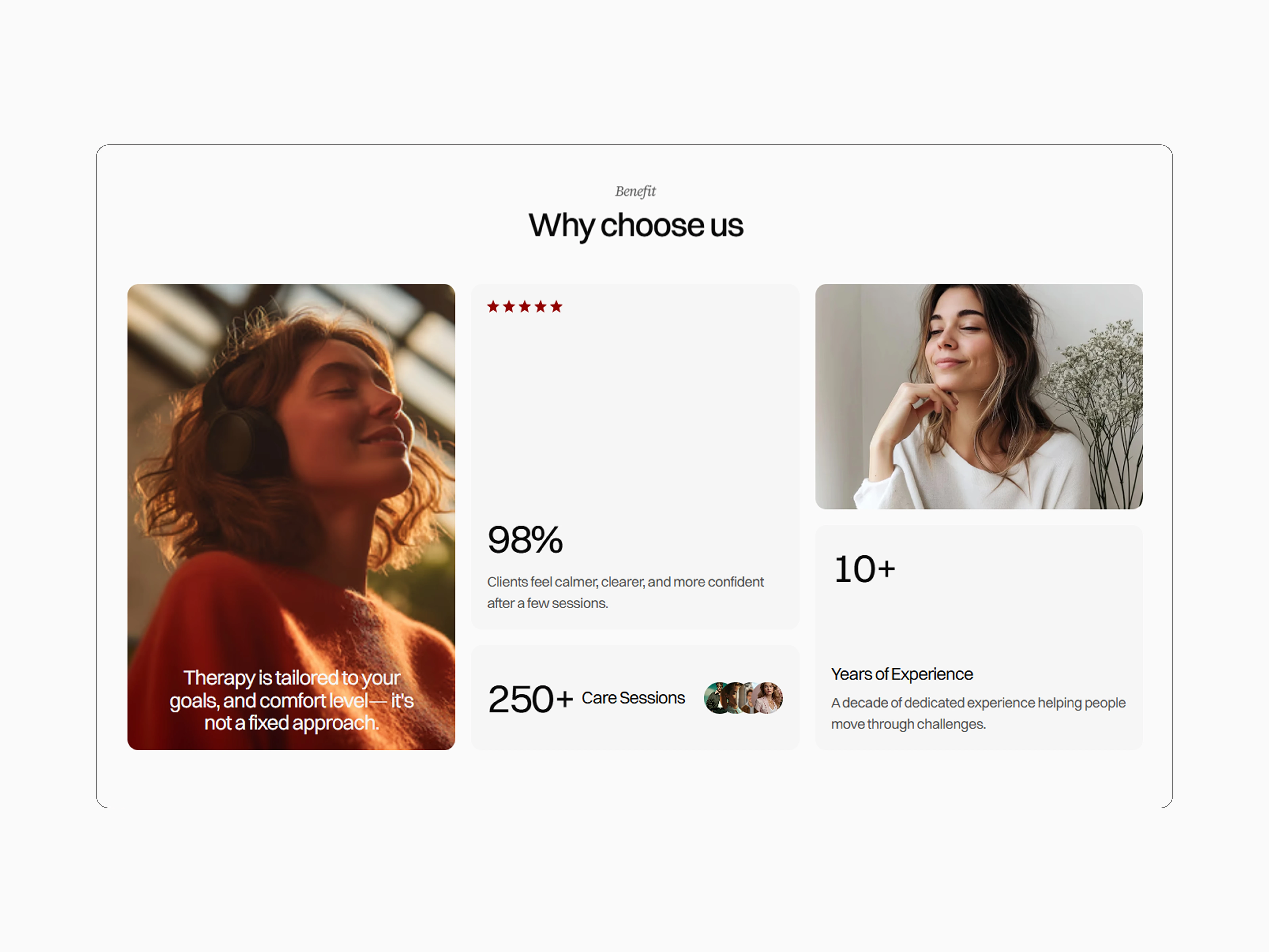 This project is a modern, conversion-focused therapy website built in Framer. Designed for therapists, counselors, and wellness professionals, the goal was to create a calming, trustworthy, and highly flexible template they could easily customize without technical experience.