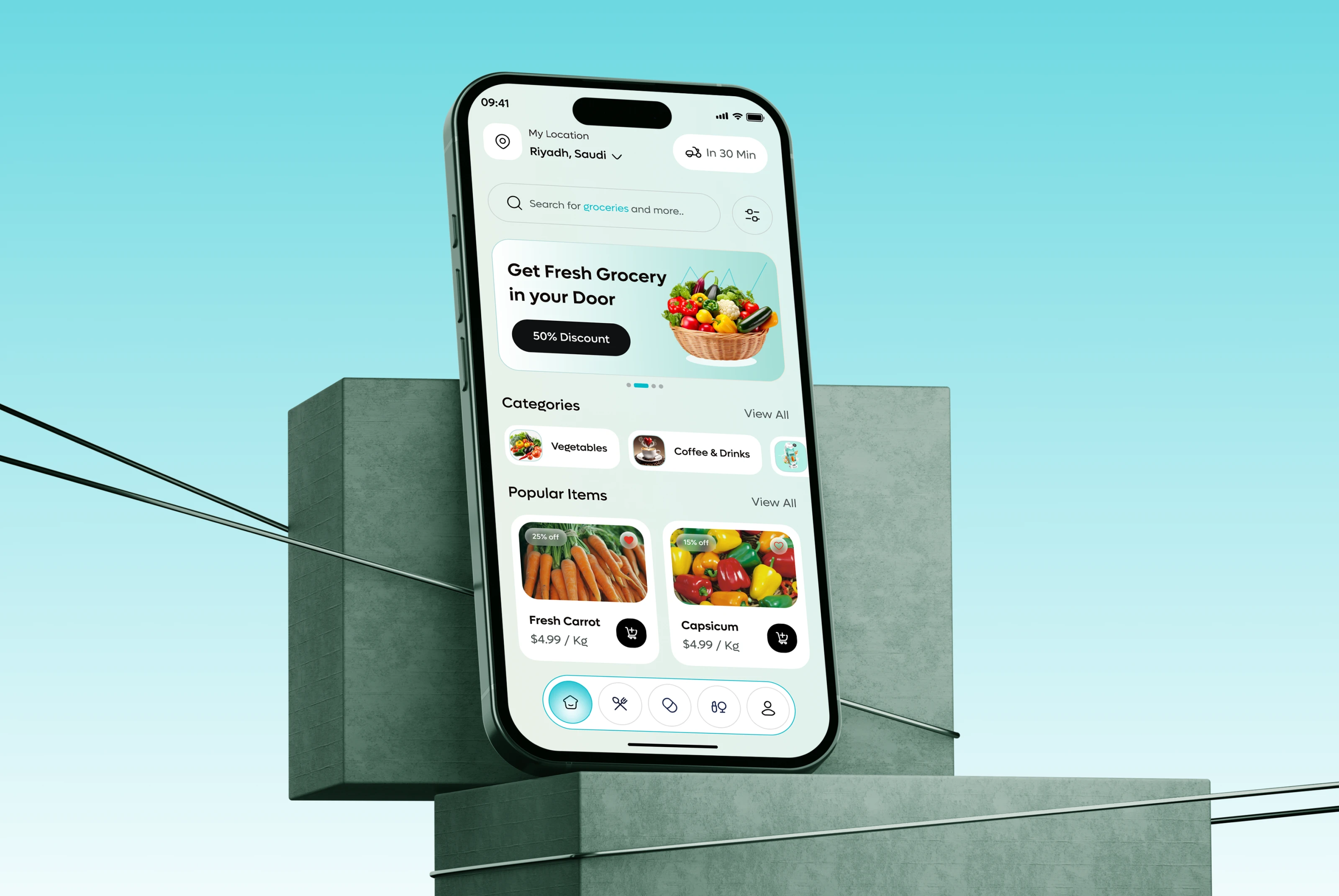 The goal was to create a modern and user-friendly grocery app design that boosts engagement and provides a delightful shopping experience.