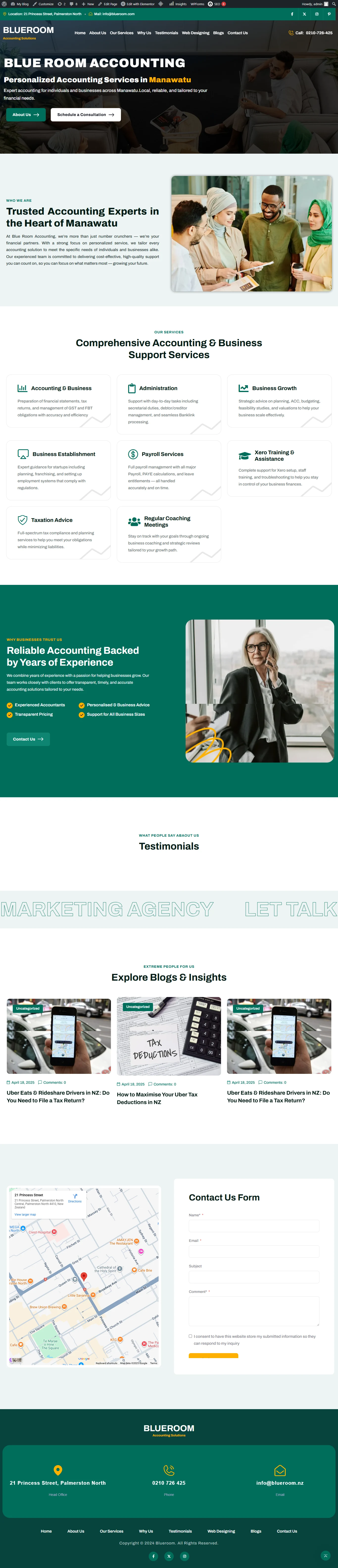 Goal: Build a modern, professional website for Blueroom that presents their accounting & business-support services clearly, and includes a strong web-design service offering. Platform: WordPress. Role: Web Designer & Developer — full cycle from design through launch.