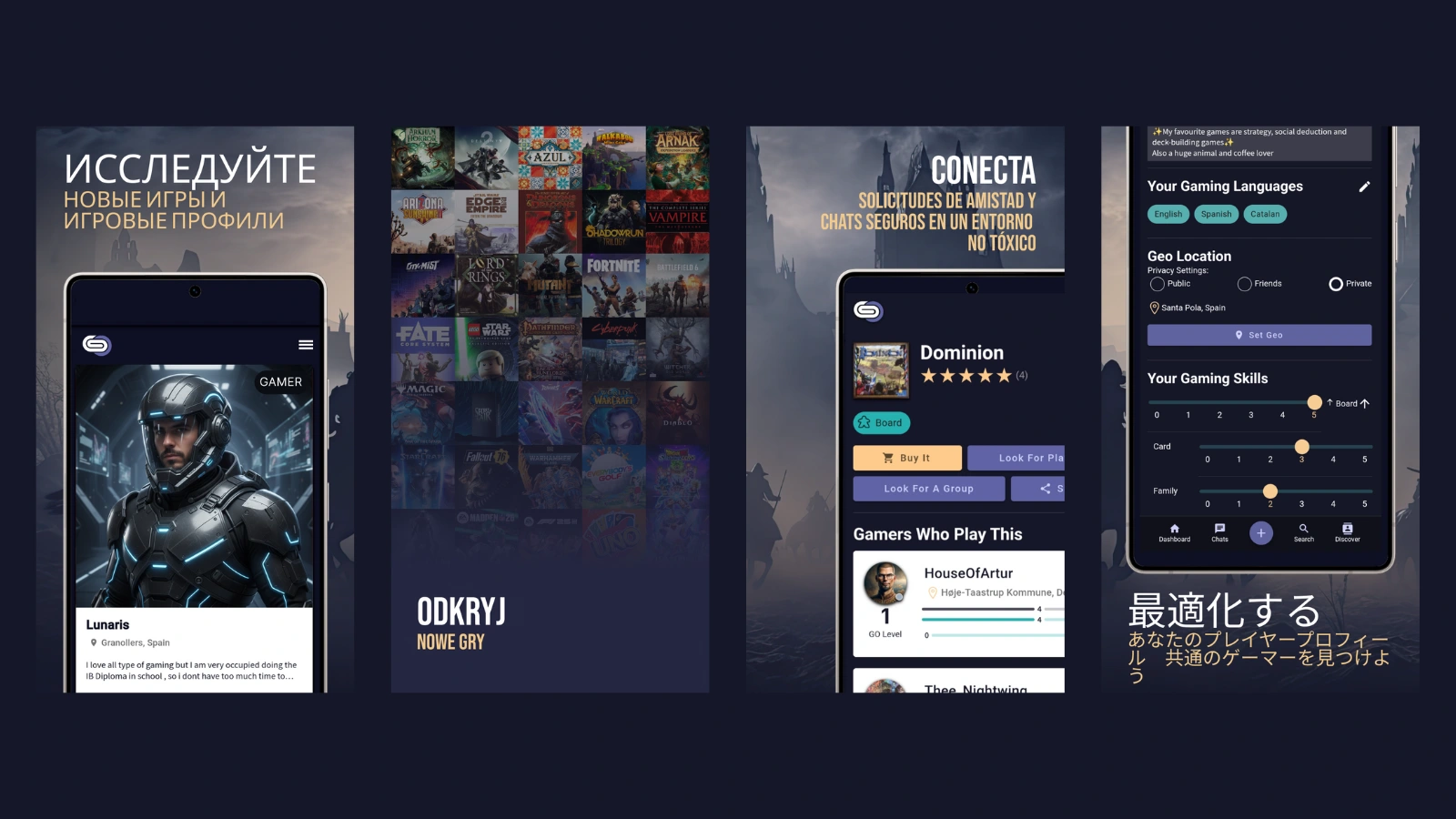 In my role as UX/UI designer and marketing strategist, I crafted a cohesive and visually dynamic set of Google Play Store images to enhance Gamers.Online app’s