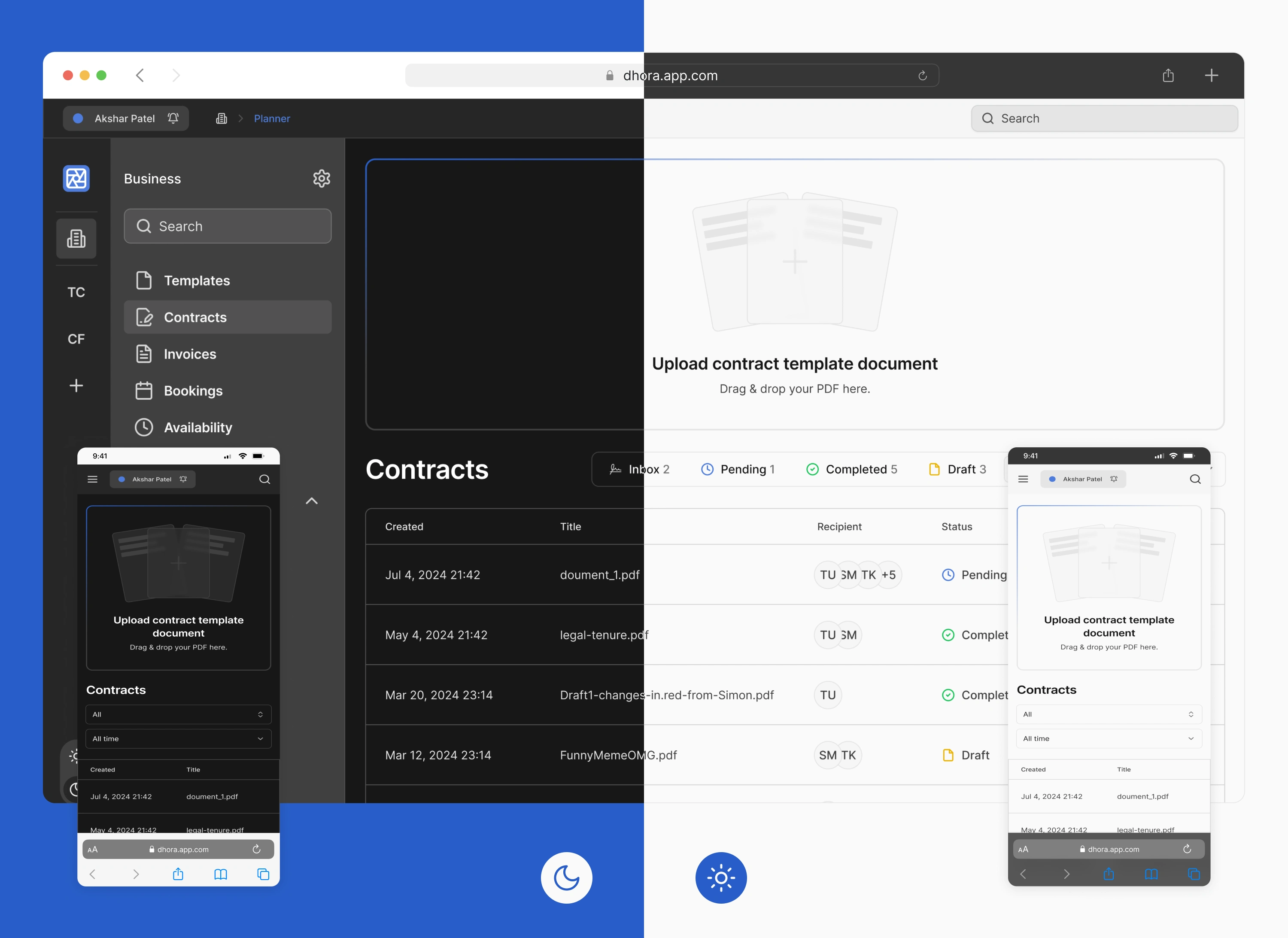 Dhora is a SaaS product that helps event planners manage everything in one place—sign documents, send invoices, collect payments, discover vendors, and host video calls. As a freelance UI/UX designer, I collaborated with the founder to revamp the entire platform, starting with a design system, followed by a homepage redesign, and finally the full app interface (desktop and mobile).