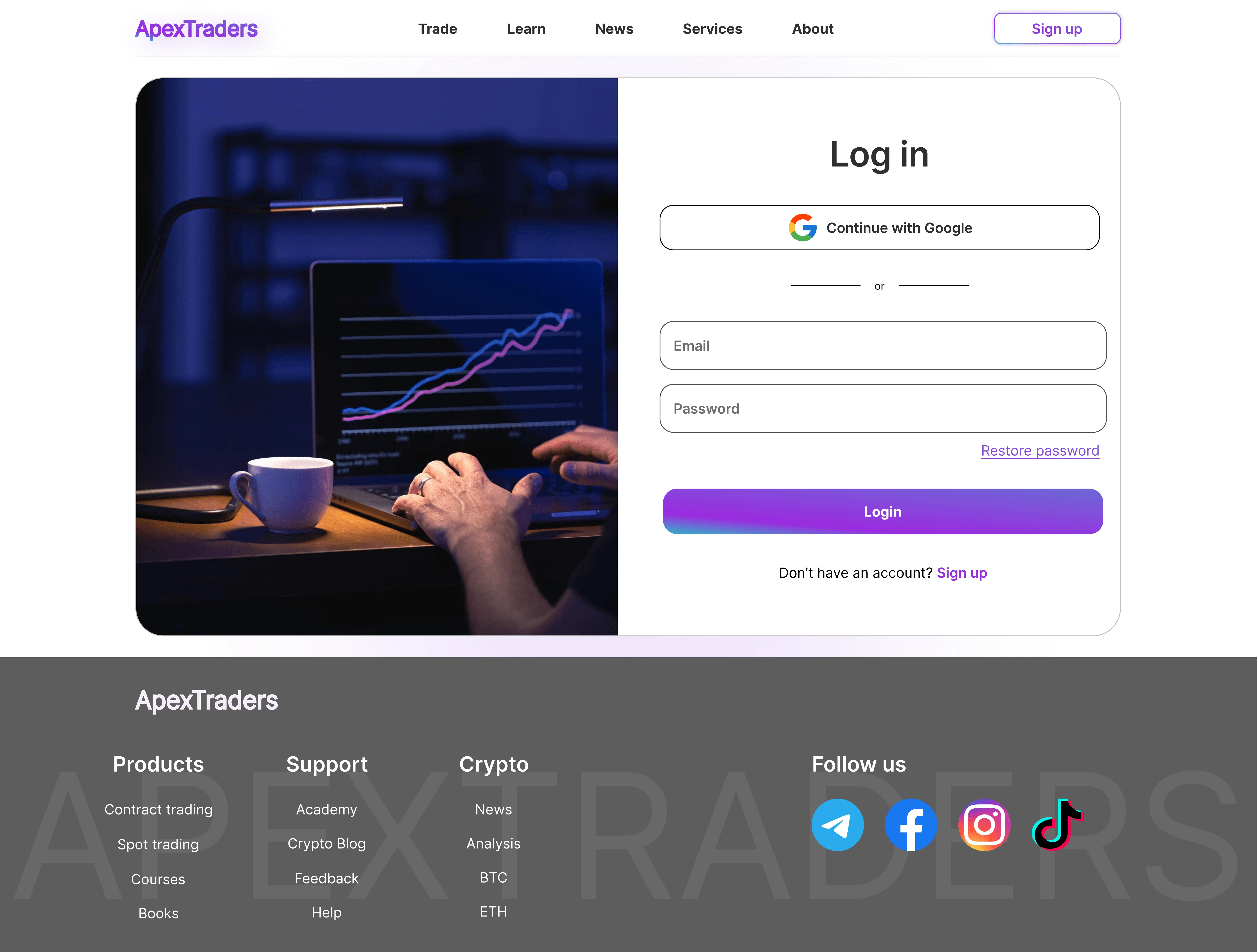 continuing with ApexTraders with it unique, Simple, Animated login-Sign ip page
