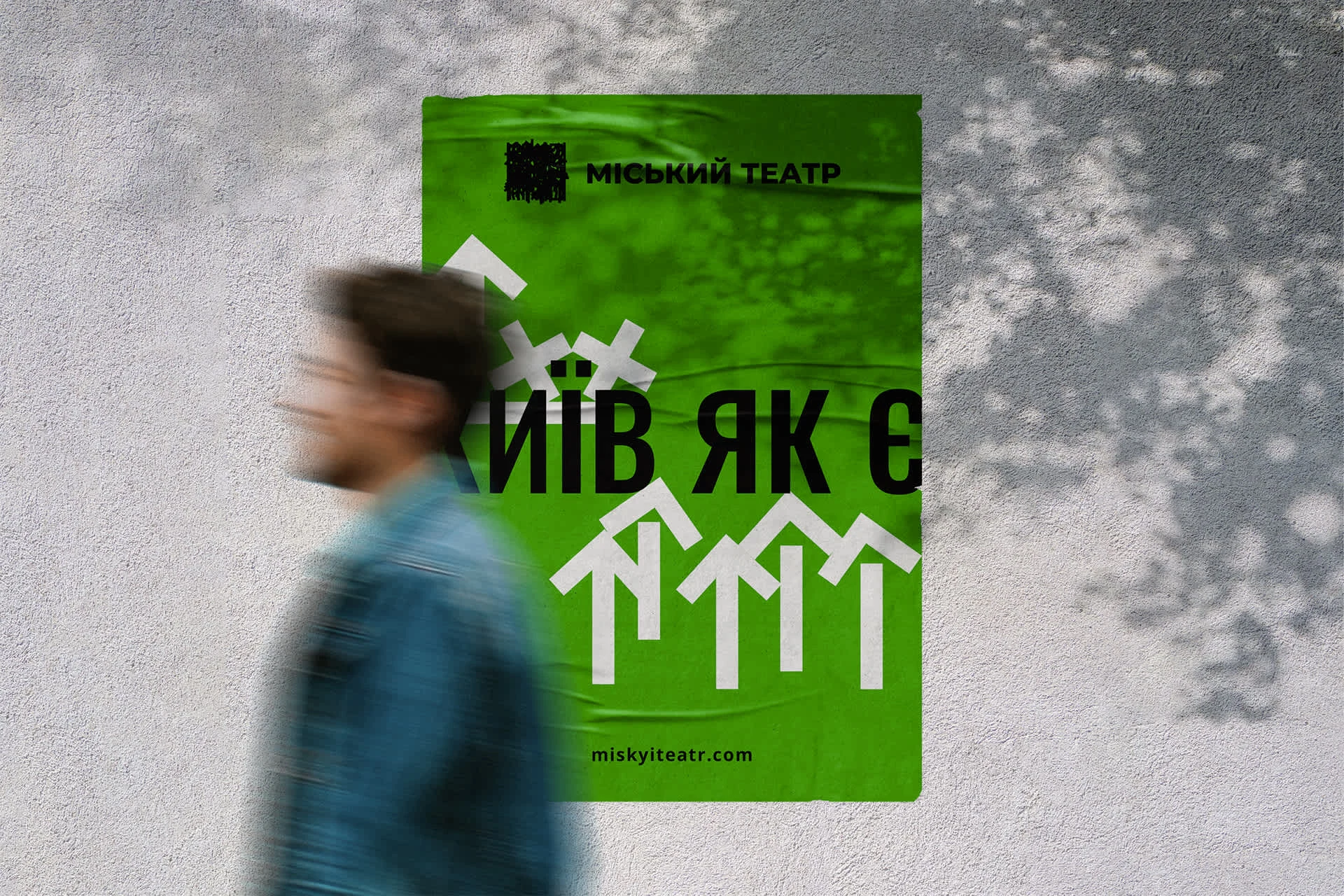 Miskyi Theatre—a modern theatre focused on immersive audio walks, city situations, and urban stories that capture the essence of the city. The logo literally depicts overlapping everyday city stories, symbolizing the city's heartbeat and its life as it truly is.