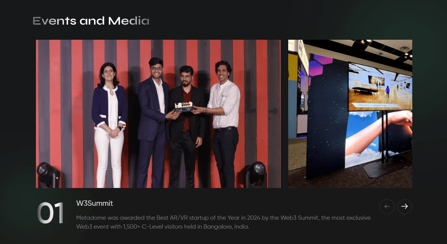 Build a responsive, engaging website showcasing Metadome’s XR technology.
