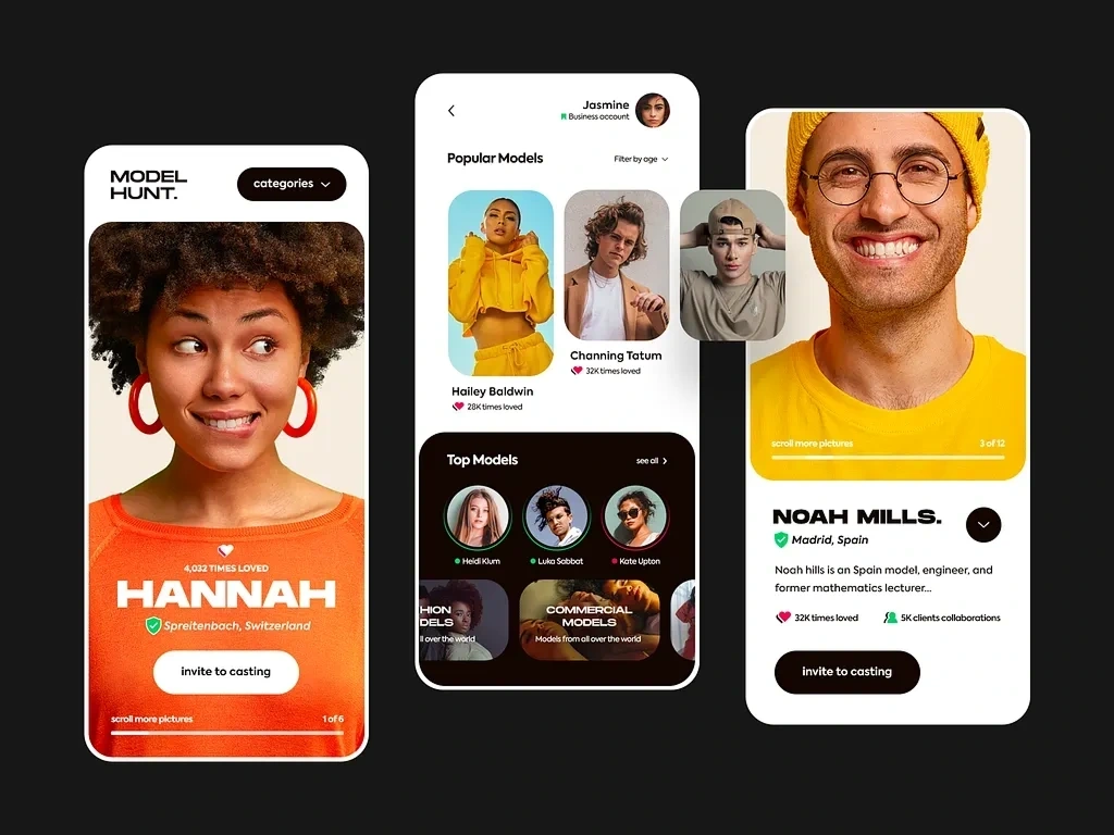 Built a visually engaging model hunt app with modern UX/UI, smooth interactions, and a conversion-focused casting experience for seamless talent discovery.
