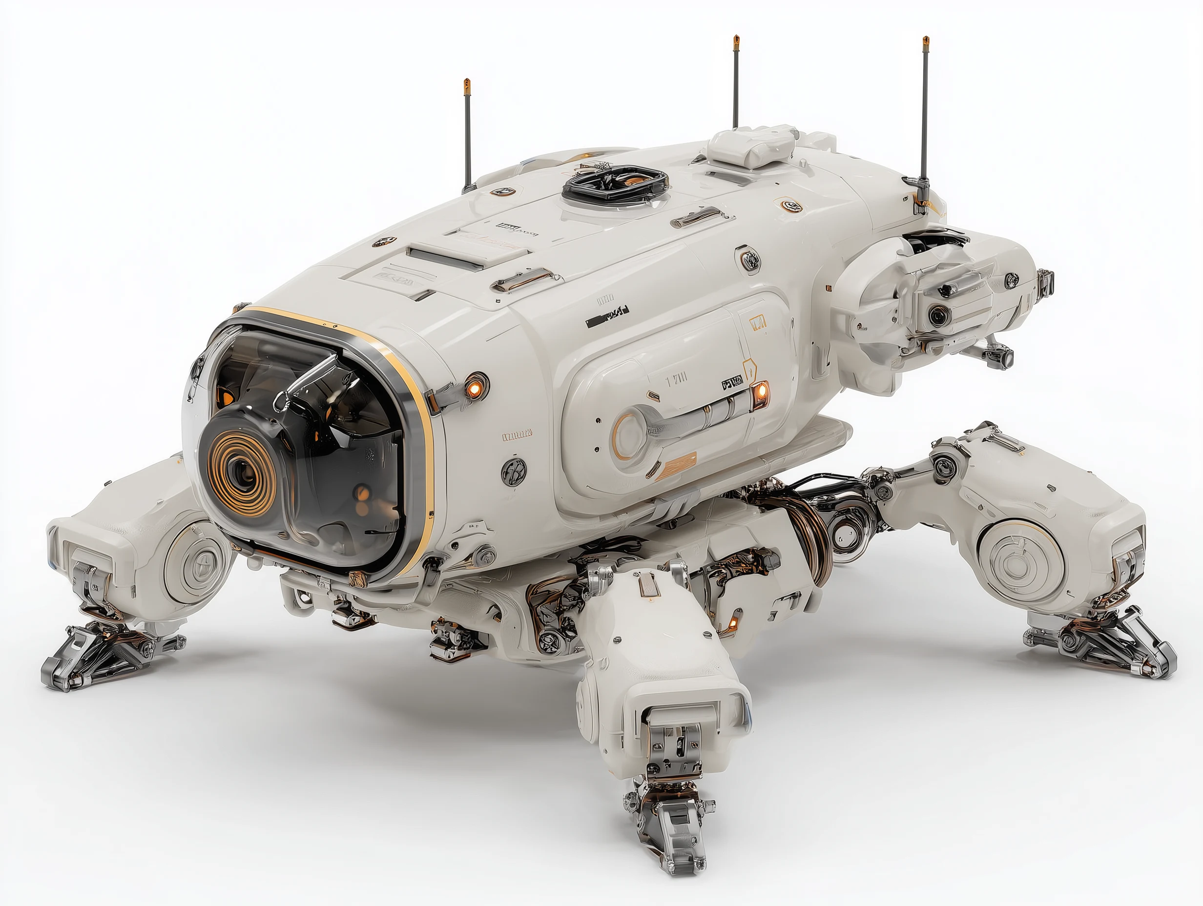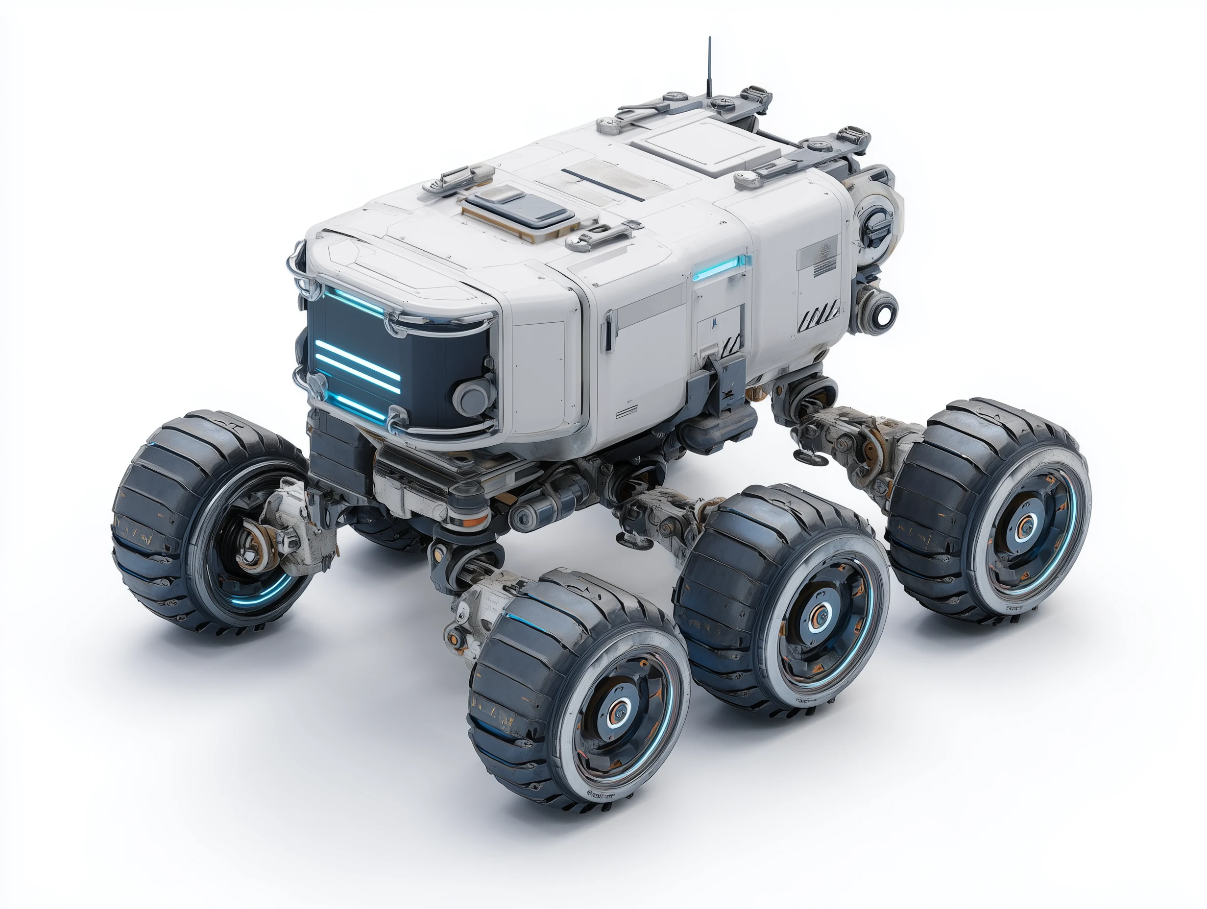 The Exploration Fleet highlights disciplined hard-surface modeling and performance-conscious design. The rover emphasizes mechanical weight and realism through defined forms and subtle emissive accents, while the drone mirrors its aesthetic in a compact, aerodynamic structure. Both assets share identical PBR workflows and scale calibration, ensuring they could coexist naturally within the same scene. The clean geometry, matte finishes, and minimalistic lighting support the intended “browser-world” production context of Intangible’s ecosystem.
