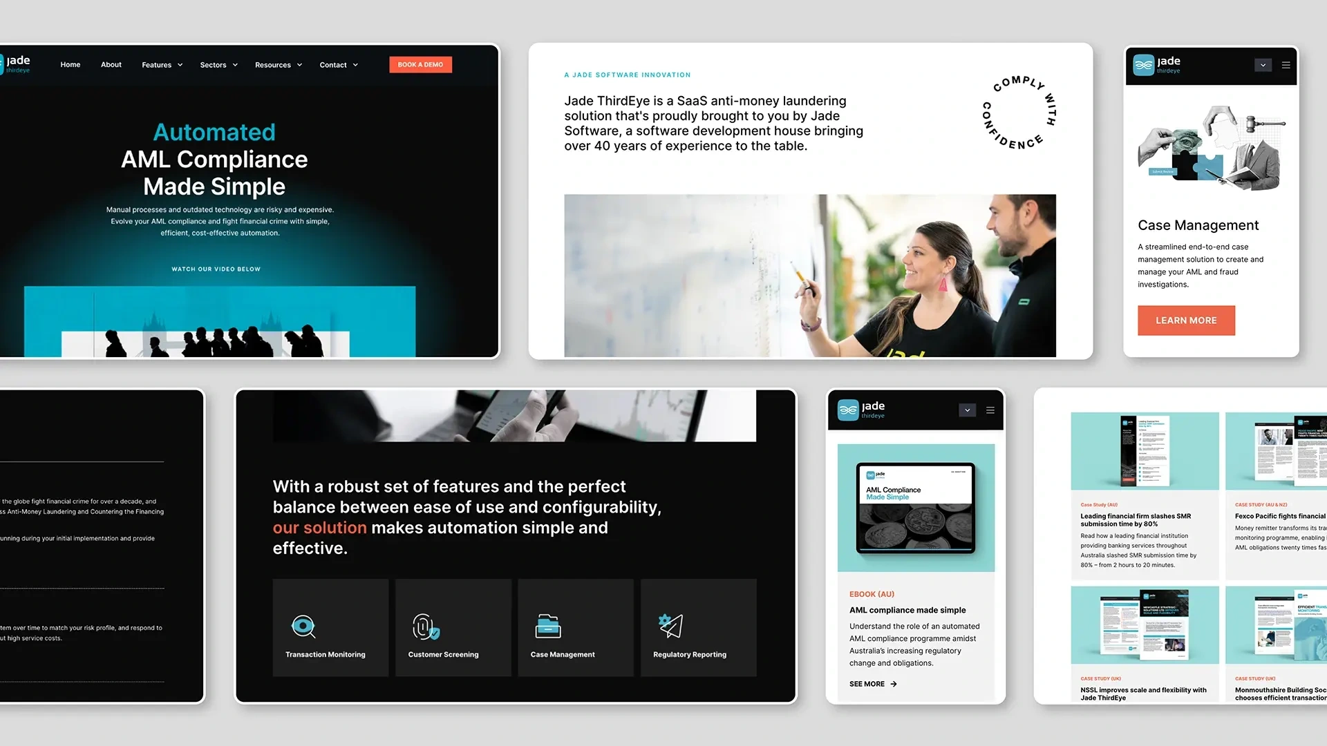 Jade Thirdeye, a SaaS anti-money laundering solution, required a website redesign to reflect its modern capabilities and stand out in the market. As the SME and lead designer, I collaborated closely with the marketing lead on wire-framing, design, and development, built on HubSpot’s CRM. The successful launch enhanced the brand narrative and market positioning, serving as the centre point for marketing communications and lead generation.