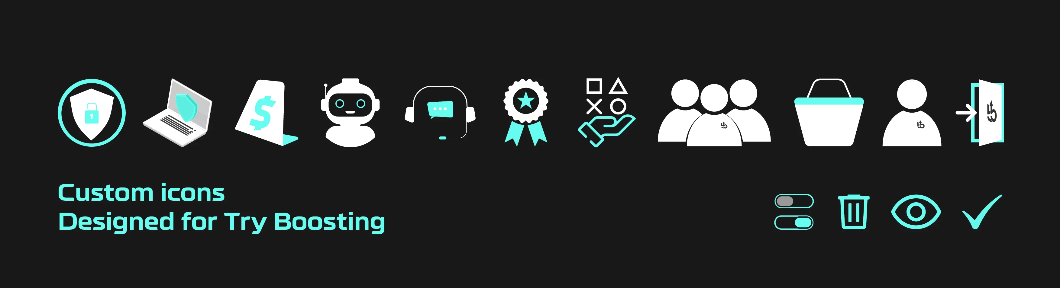 These are a few icons designed at our studio for various websites, applications and one of our own project i.e. Try Boosting; an in-game services website.