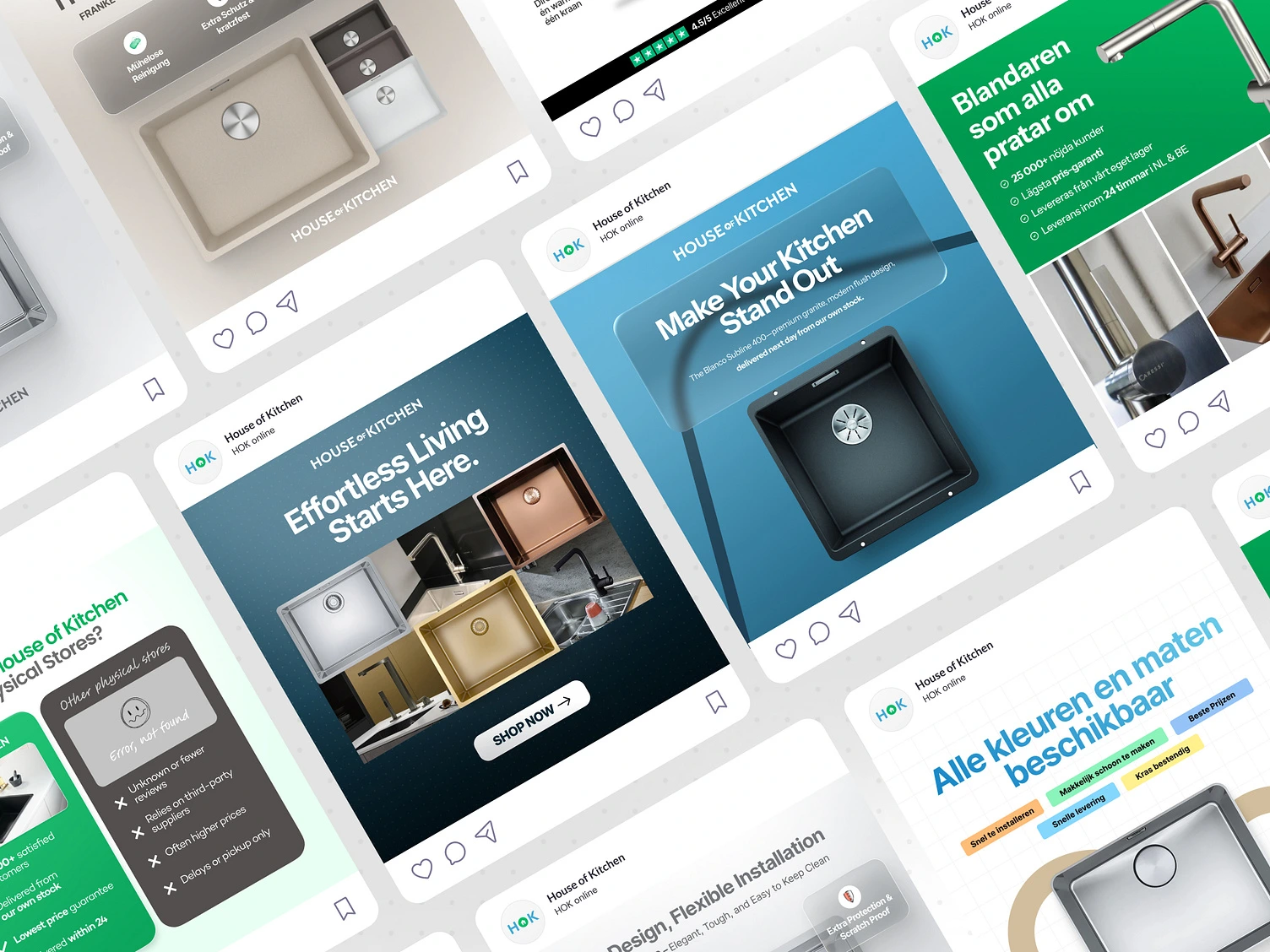 A clean, conversion-ready set of static ads for a modern kitchen brand, designed for Meta {Instagram, facebook} Stories and Feed.