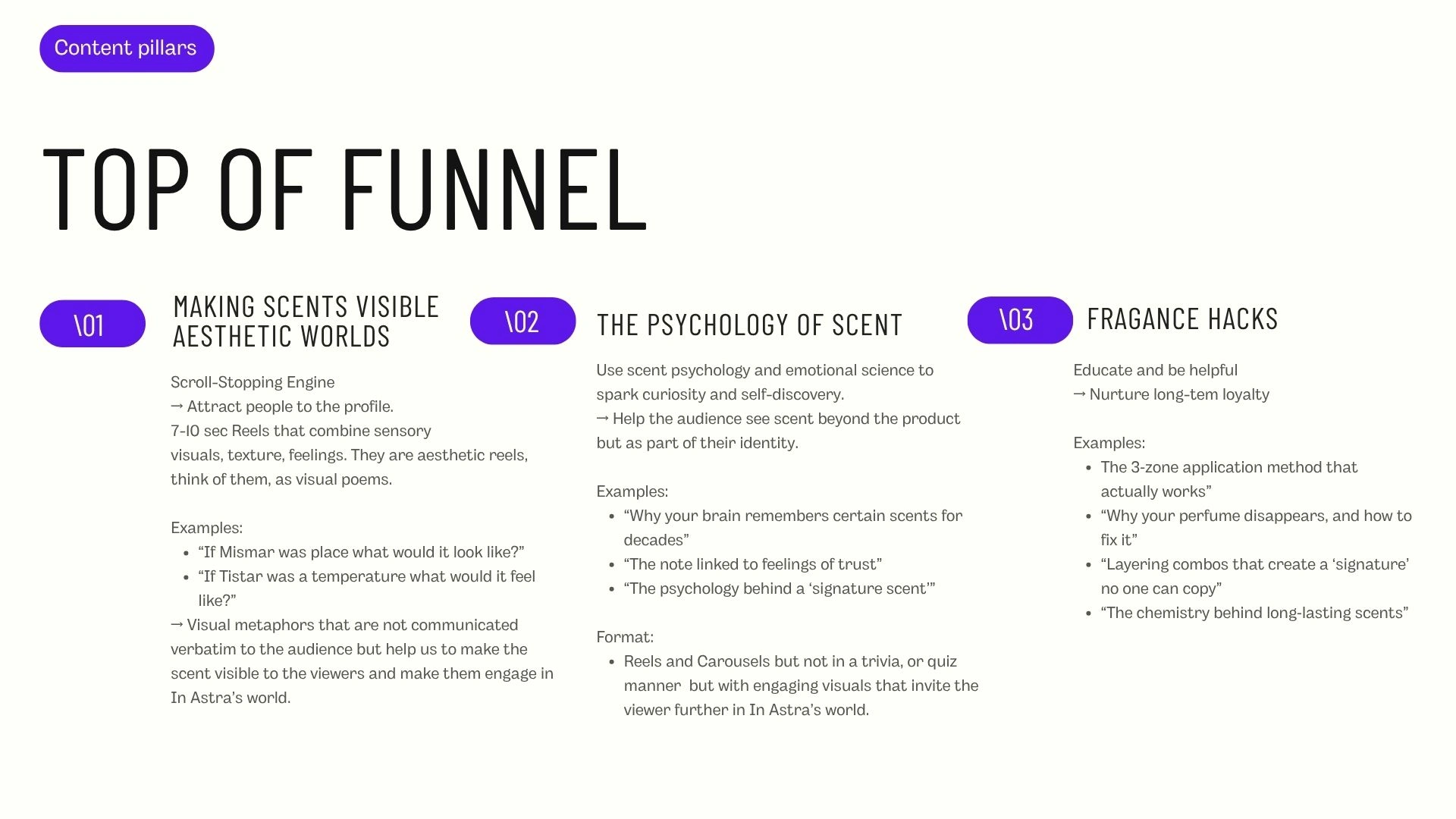 I designed a social media content strategy for a perfume brand with the goal to gain more reach and convert.
