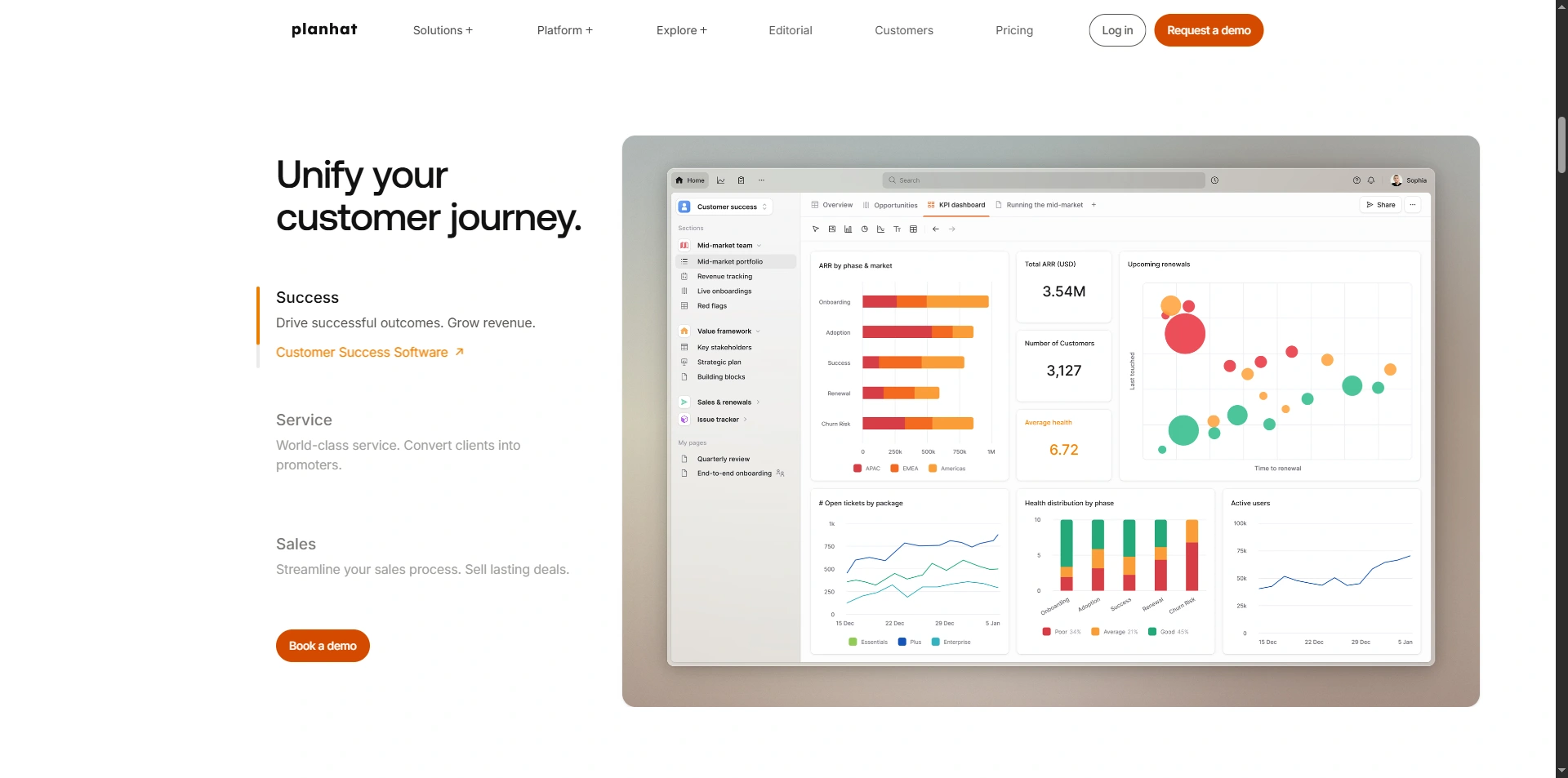 The site presents Planhat as a modern, credible enterprise platform with clear value messaging, which supports their go-to-market efforts.