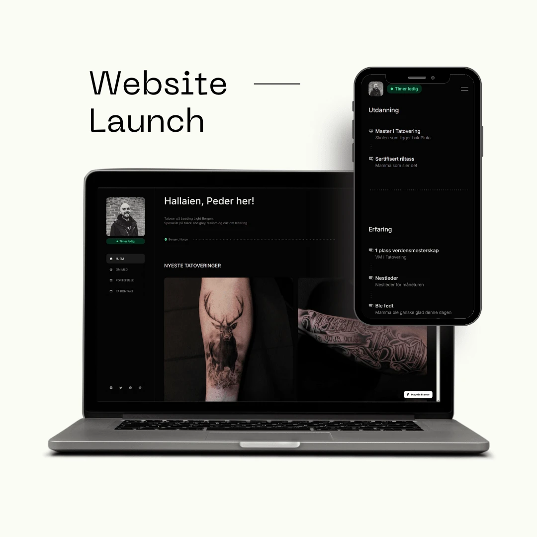 I created a sleek and visually engaging portfolio website for a tattoo artist using Framer. The site showcases the artist's work with high-quality image galleries, smooth animations, and a minimalist design that emphasizes the art. The layout is fully responsive, ensuring a seamless user experience across all devices. Additionally, I integrated intuitive navigation and contact features to make it easy for potential clients to explore the portfolio and get in touch with the artist. The final result is a professional online presence that reflects the artist's unique style and craftsmanship.