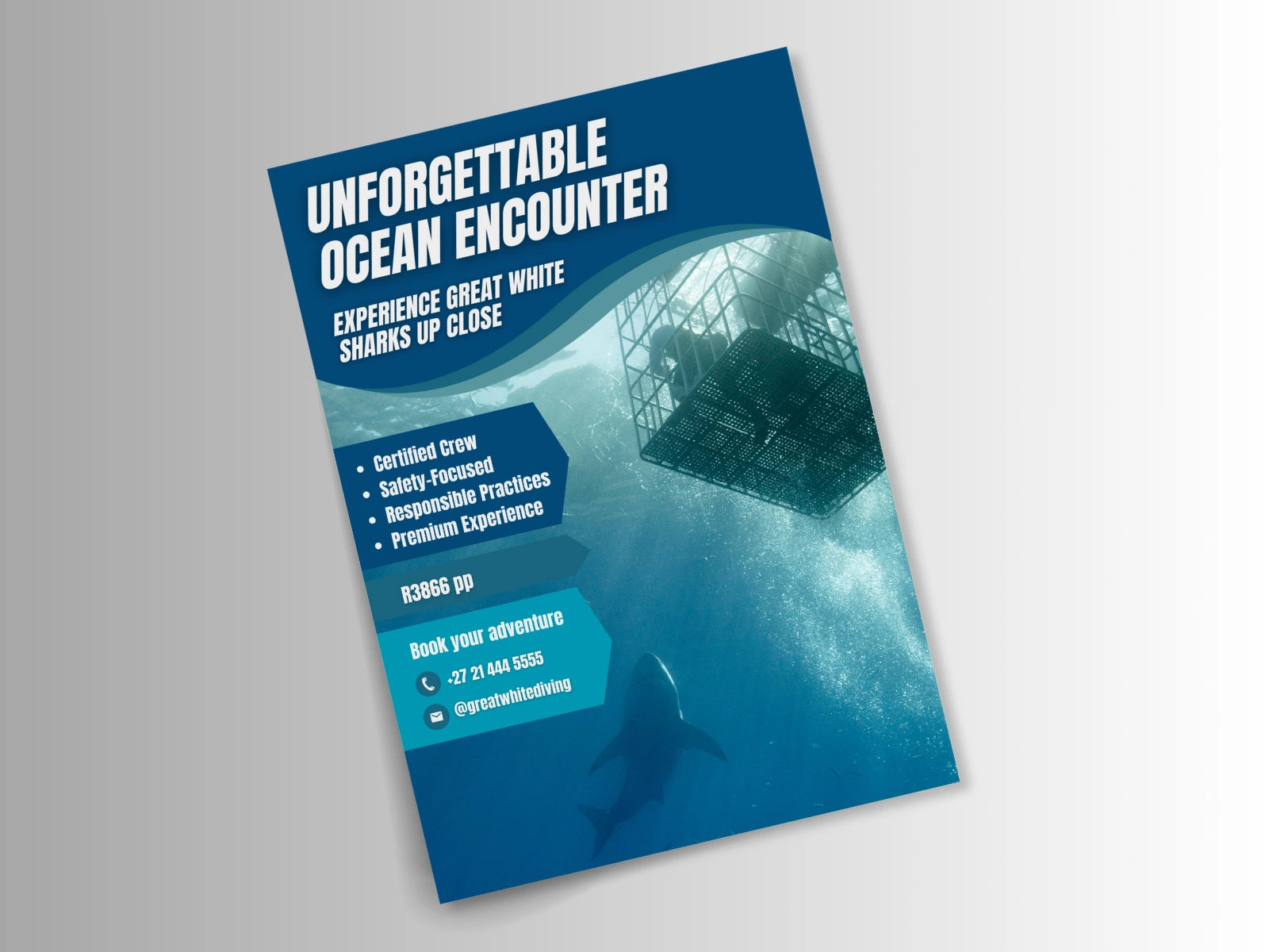 Concept flyer demonstrating bold typography, visual hierarchy, and photo compositing for a high-impact adventure tourism promotion.