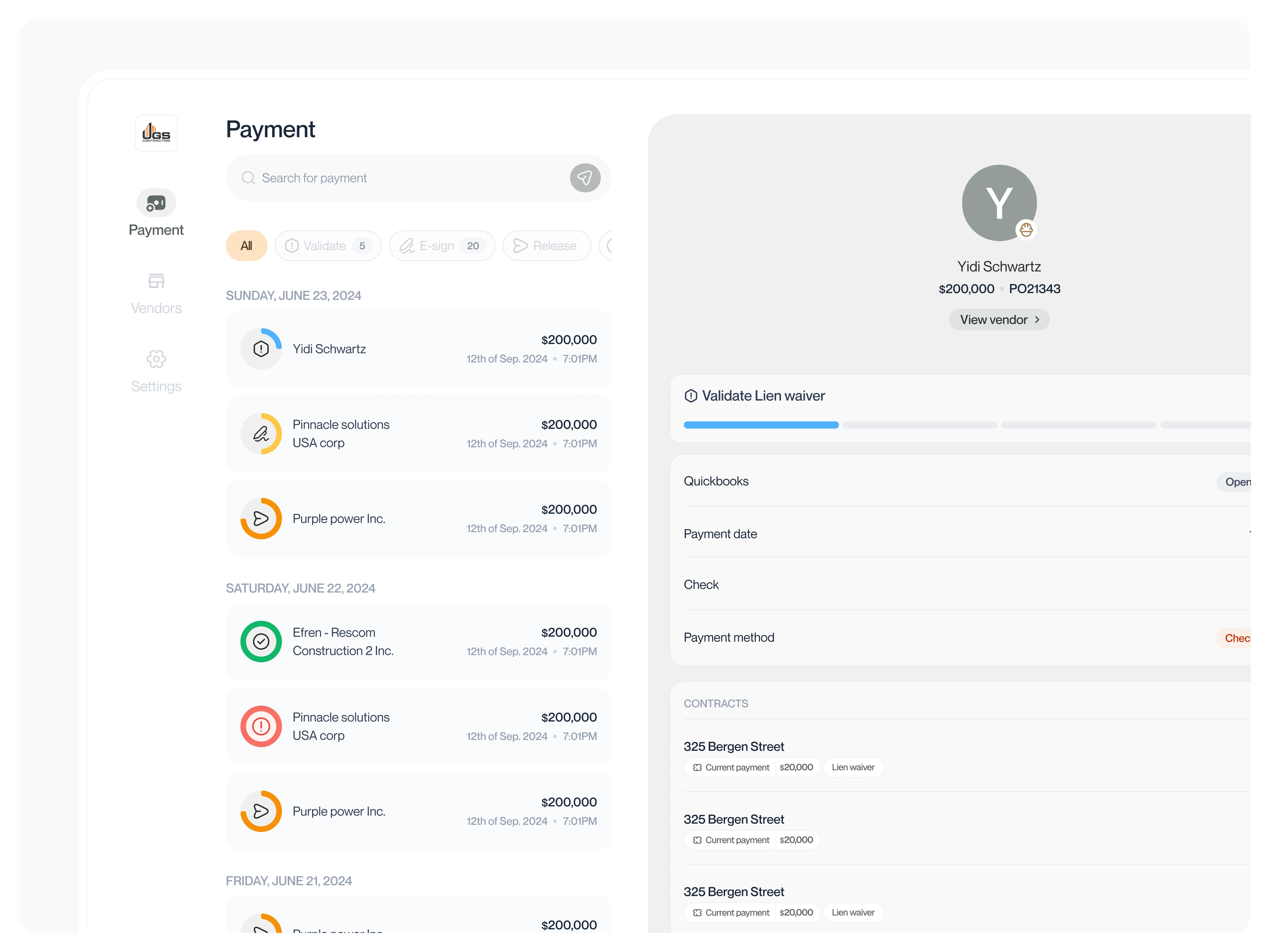 Designed the end-to-end UI for a construction payment and compliance mobile and web app covering vendor management, lien waivers, document tracking, etc.