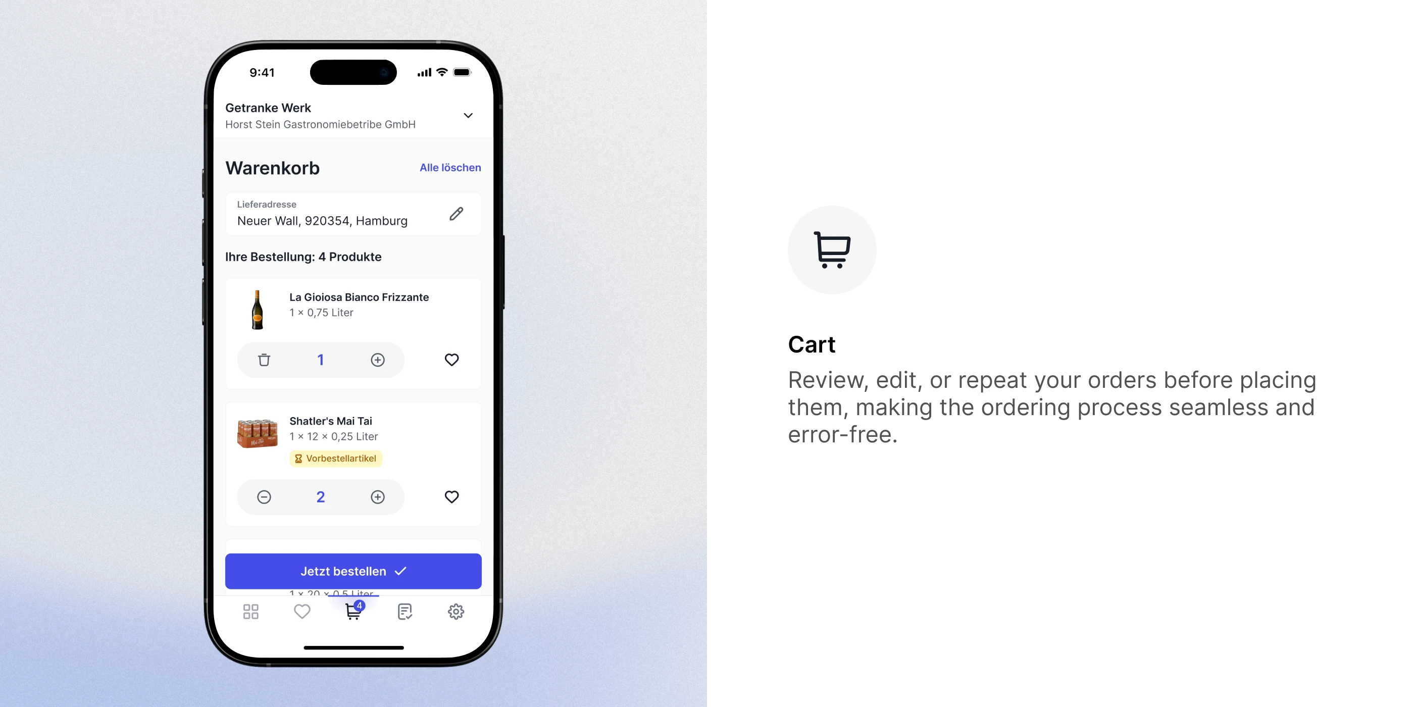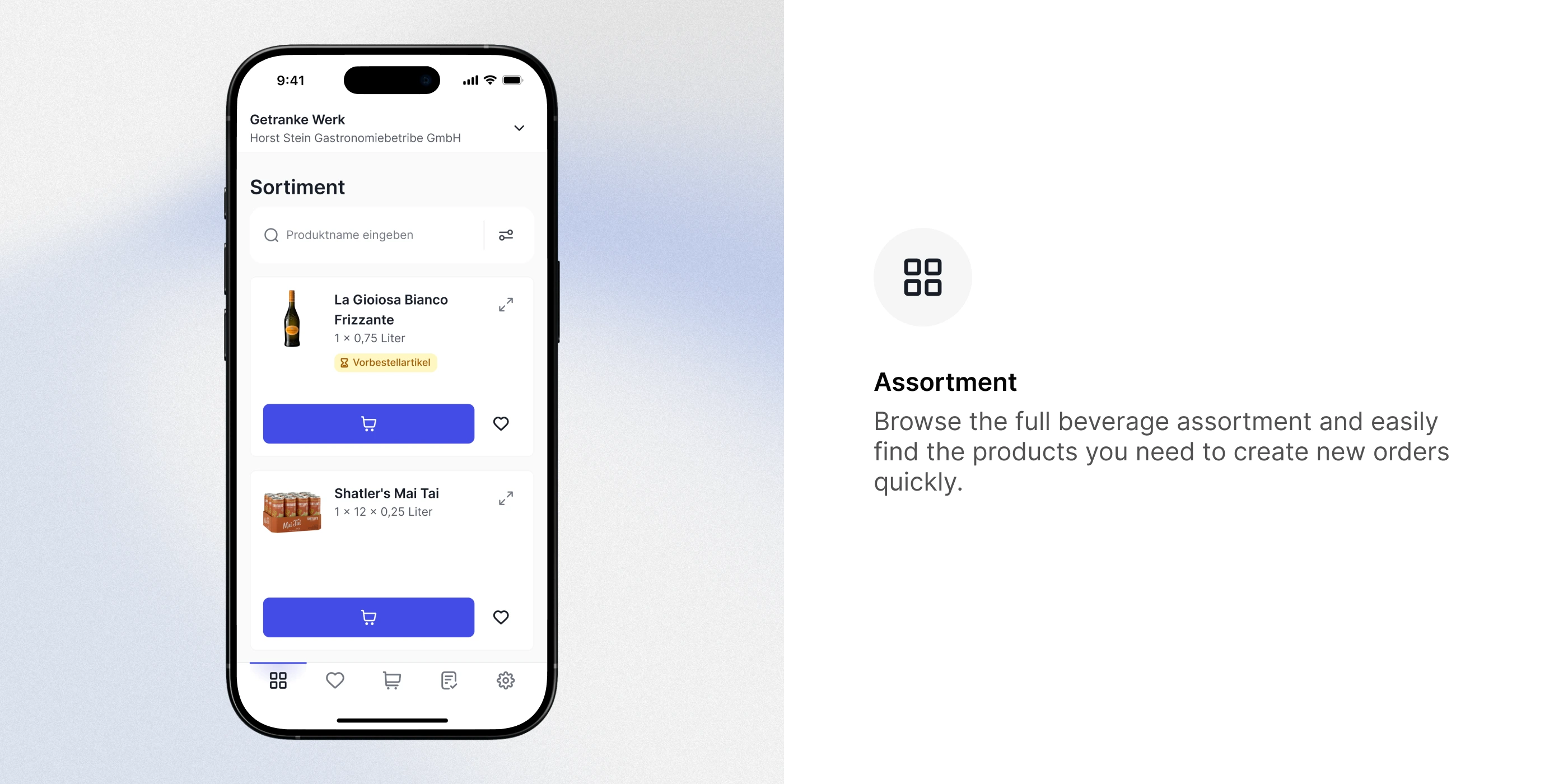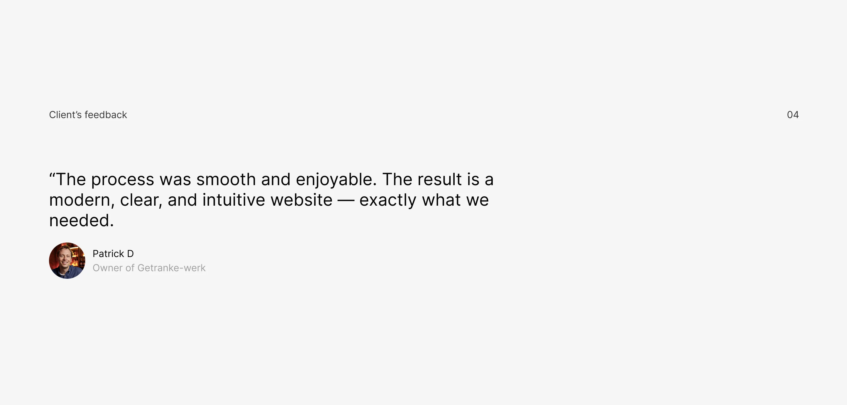 A streamlined and modern B2B web platform was created for Getränke-Werk, combining a clean, intuitive design with clear navigation across five main pages.