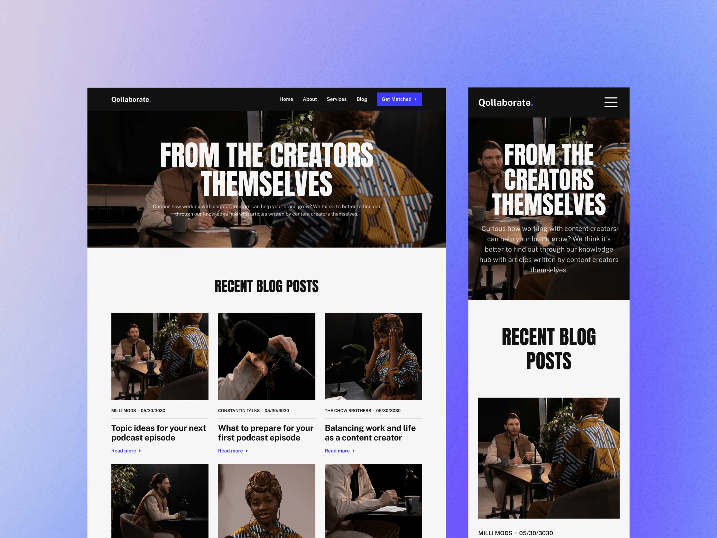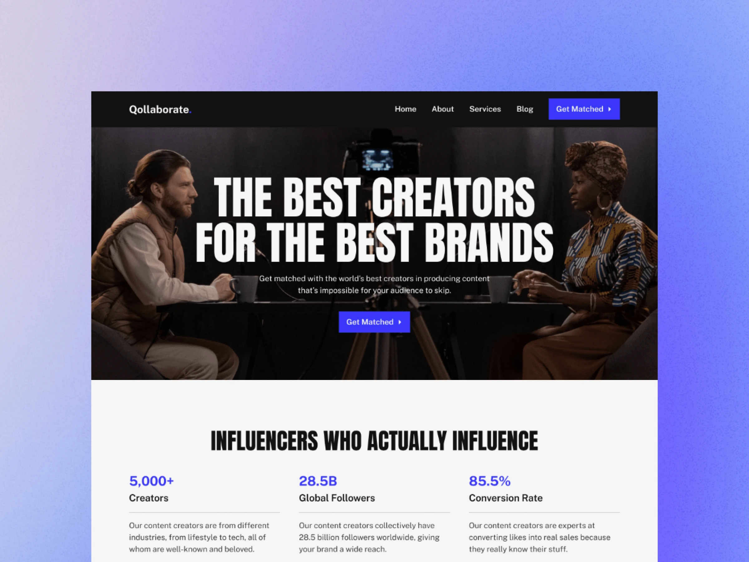 Qollaborate is a Framer template for talent agencies, specifically ones that work with content creators. This template was made by Bunny Hop Creatives.