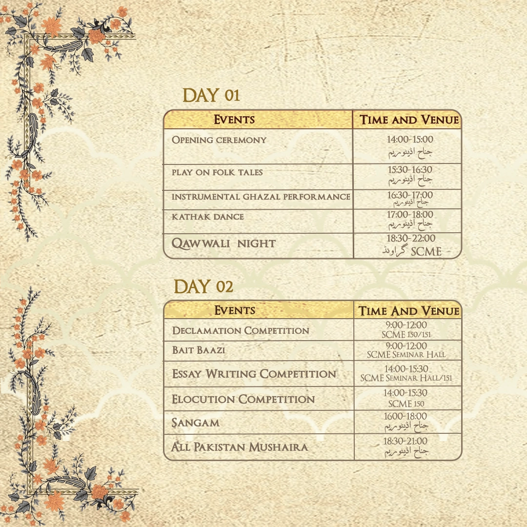 Curated Instagram posts grids for National Literary Festival a 3 day event held at NUST Islamabad.