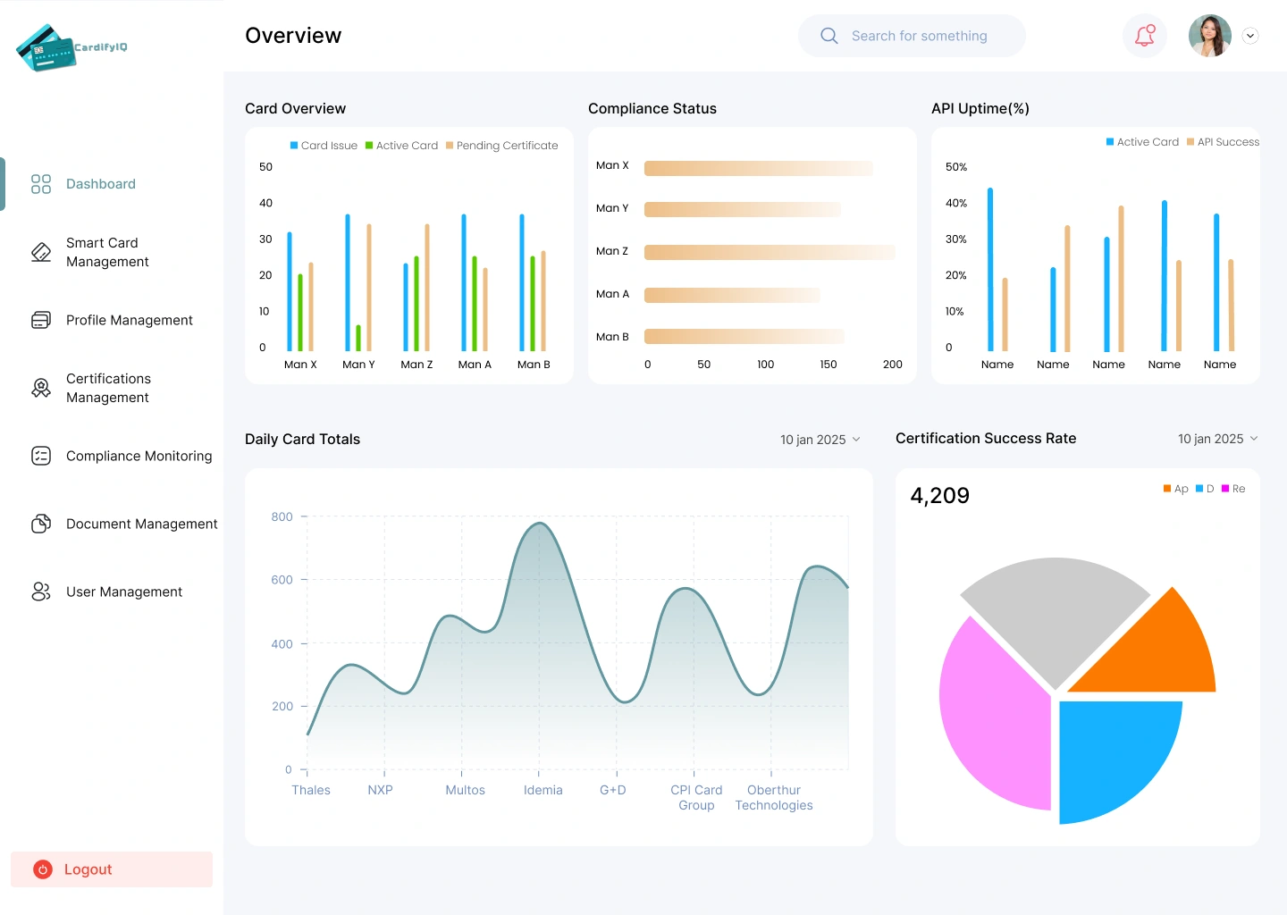 A secure web platform that handles smart cards, certificates, and compliance for banking and government sectors. This website makes lifecycle management easy with top-notch security and access controls to stop fraud.