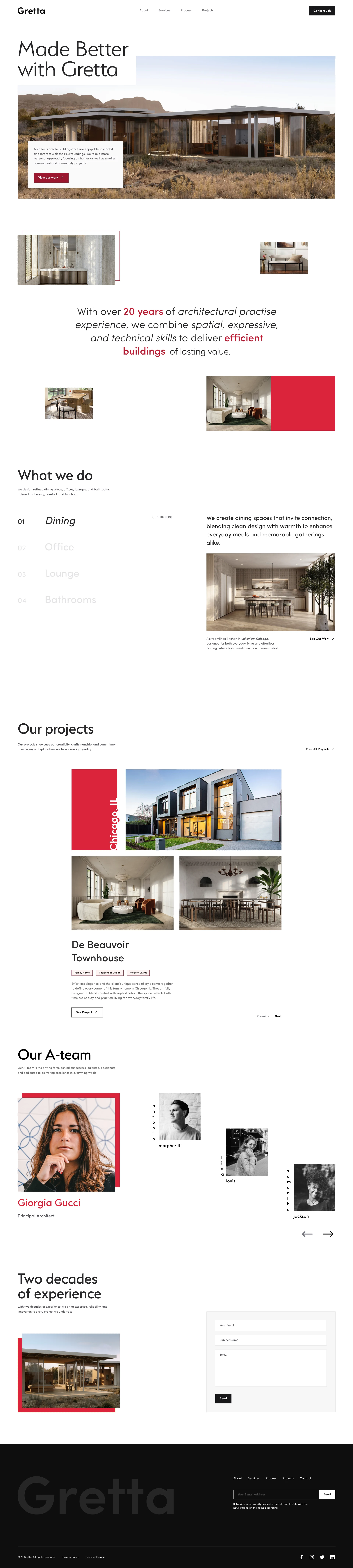 This UX/UI project involved the design and conceptualization of a website for Gretta Architectural Studio, an established firm with over 20 years of experience. The goal was to create a digital presence that mirrors the studio's core principles: clarity, functionality, and timeless elegance. The website serves as a virtual portfolio and a primary point of contact, designed to attract clients by showcasing the profound impact of Gretta's work on living and working spaces.
