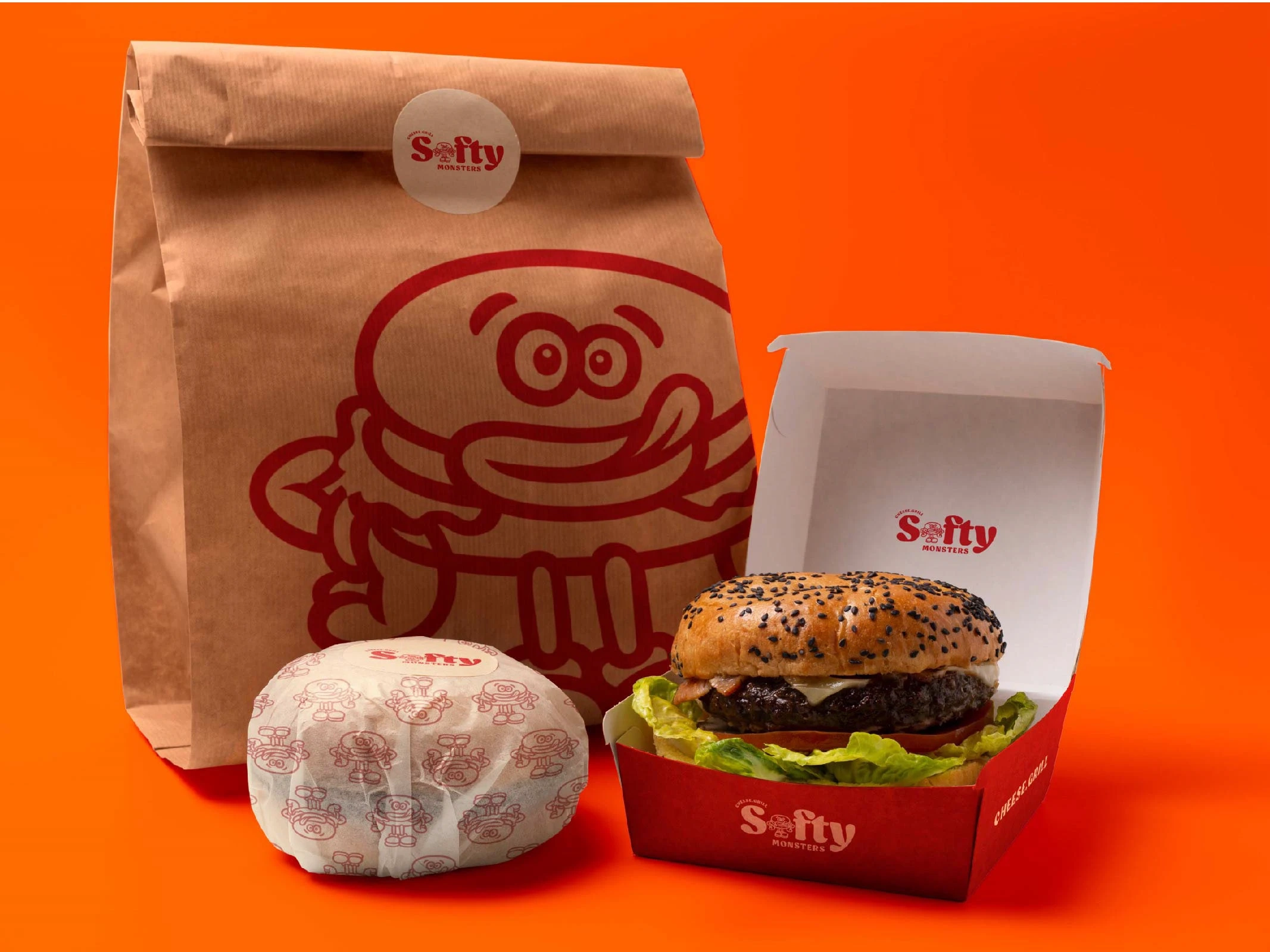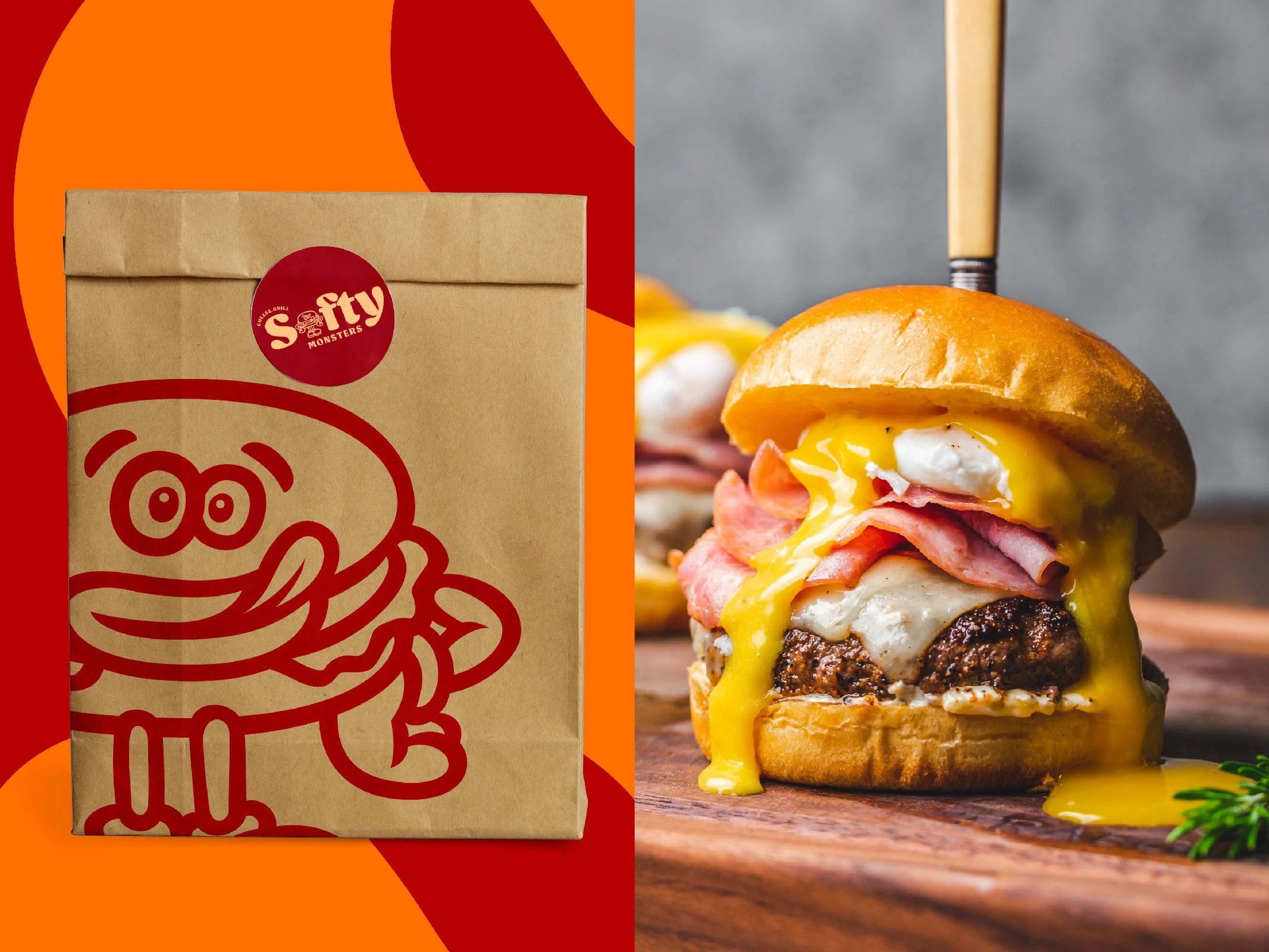 "Brand identity design for a fun and modern burger brand. Includes logo design, color palette, and brand applications designed to feel bold and memorable."