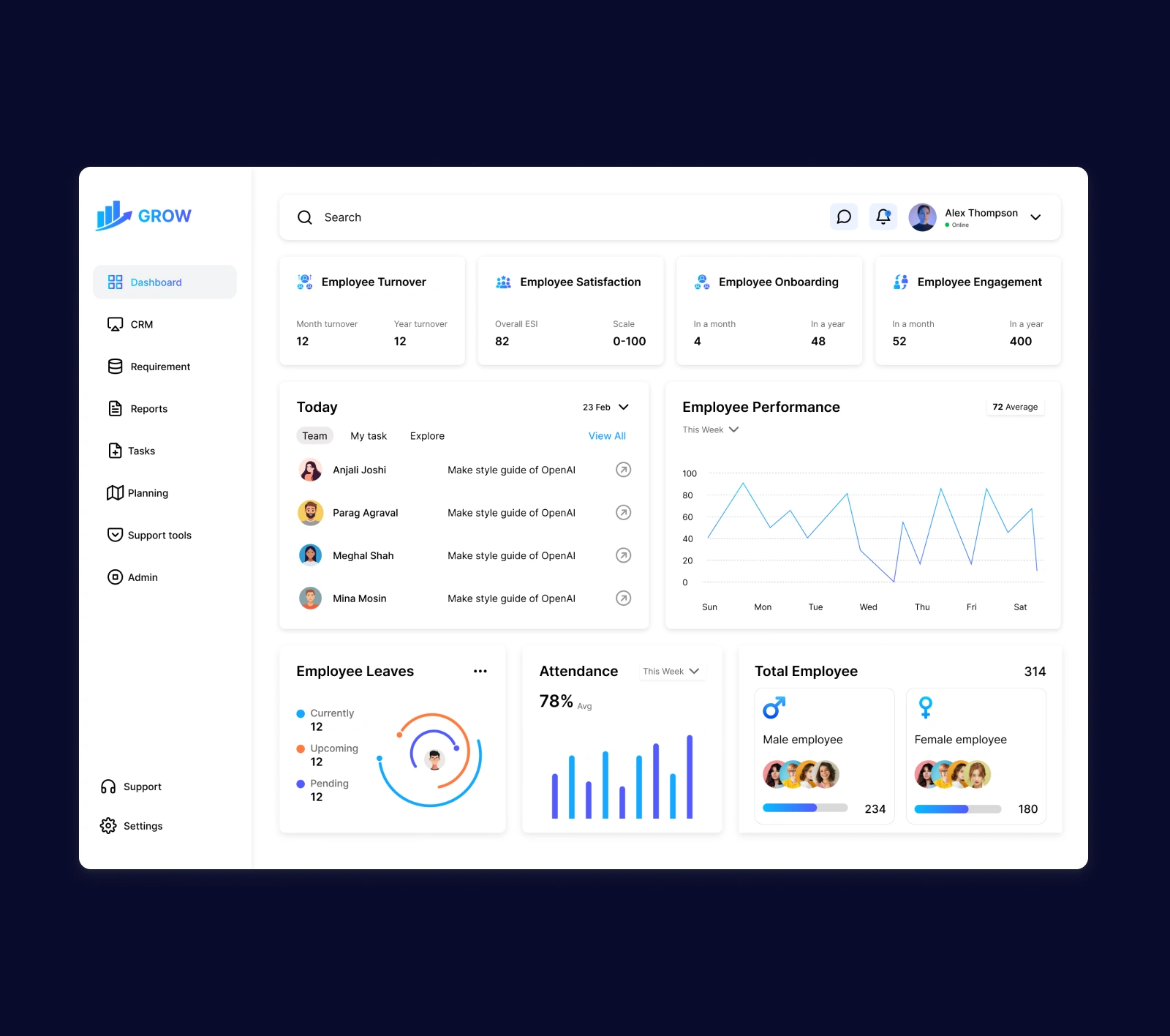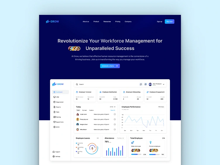 Grow - An HR management platform focused on elevating workforce performance, employee satisfaction, and data-driven decision-making for strategic planning.