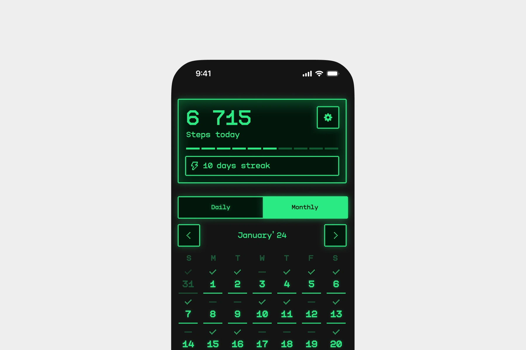 With millions of pedometer apps available, standing out required a fresh and compelling approach. My goal was to create StepUp, an app that combined playful retro aesthetics, personalized customization, and a unique incentive to unlock addictive apps (like Instagram) only after achieving daily step goals.