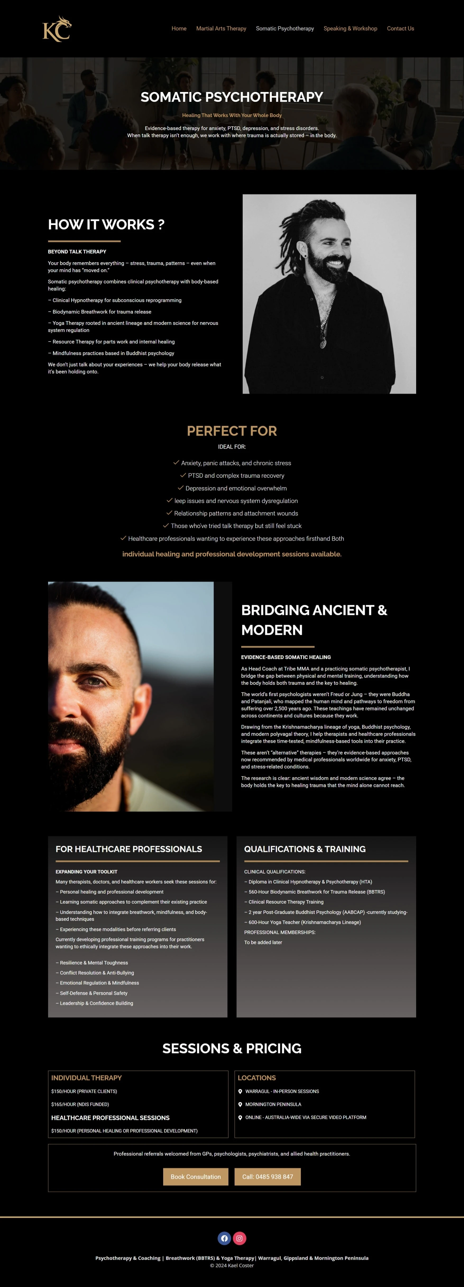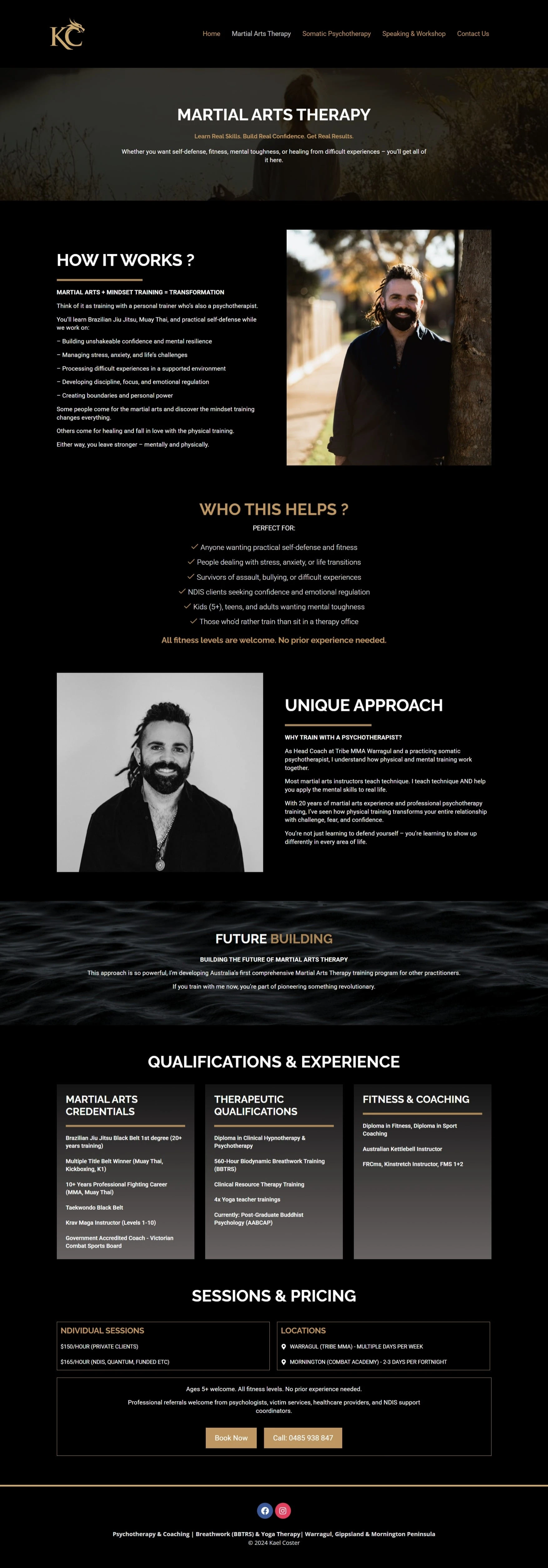 The brand aims to reach people who want a balanced, grounded lifestyle combining therapeutic practices with martial‑arts discipline and holistic health. Kael Coster also provides free resources like eBooks, guided meditations / NSDR & yoga‑nidra sessions, and engages with a community through social‑media presence.