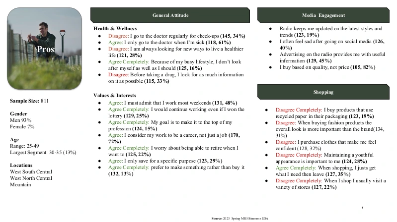 We used large consumer panels to define three specific audiences, while also pulling out key mindsets and attitudes from each that would help us better position the product. We also provided shopping data, to help inform which stores might be our best priority from a sales and distribution perspective. Below are some of the audience data (for one of the audiences), along with additional design guidance.