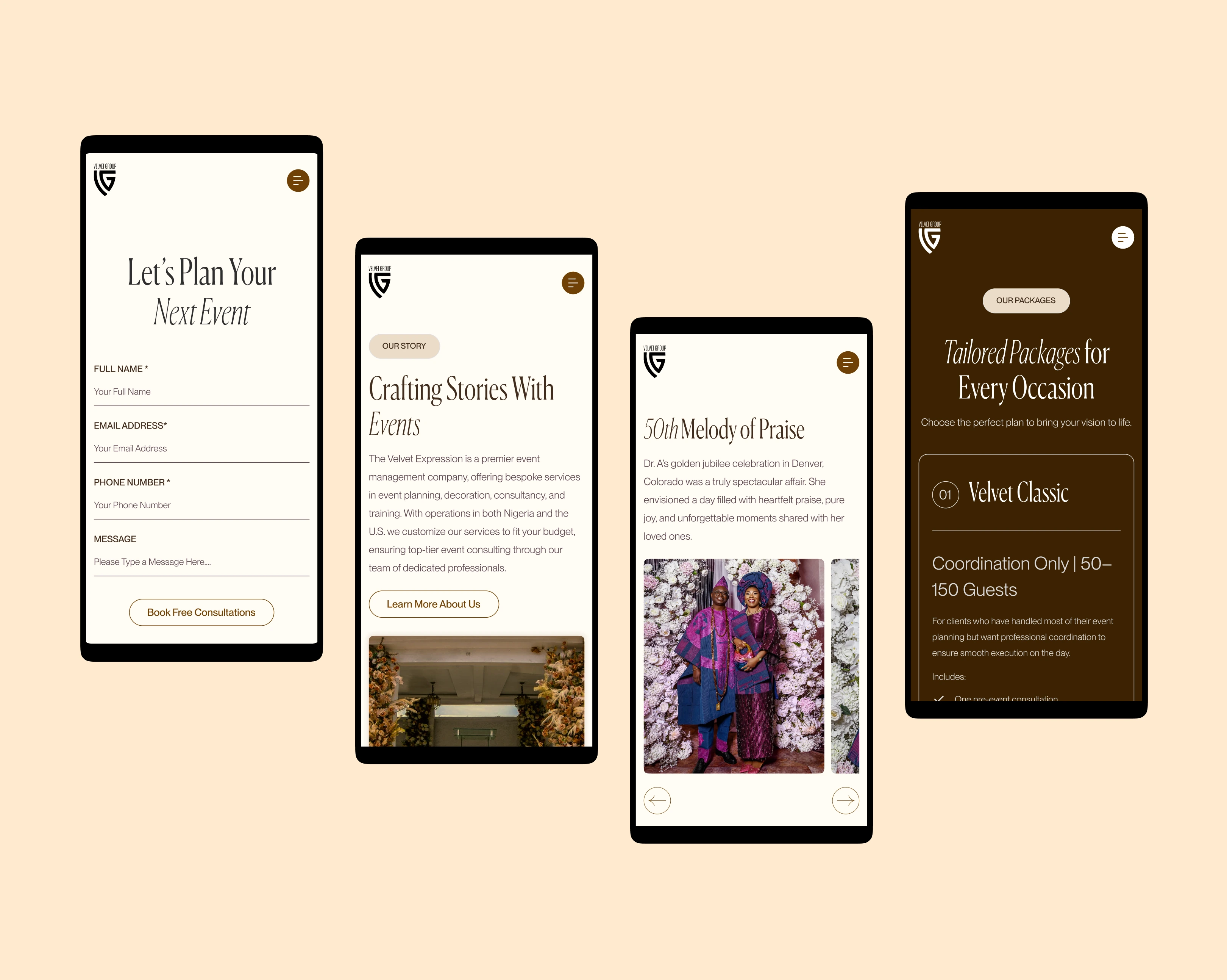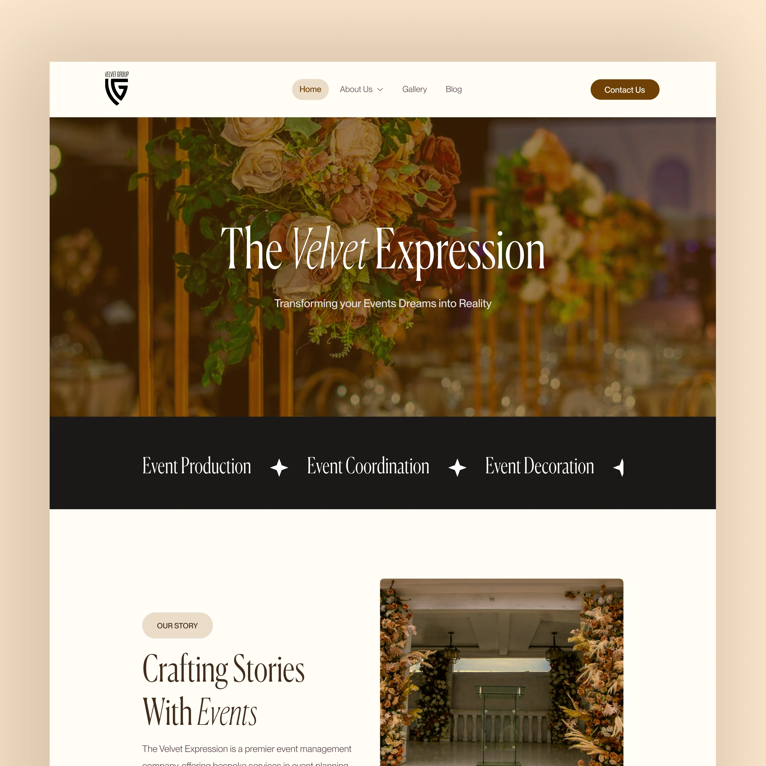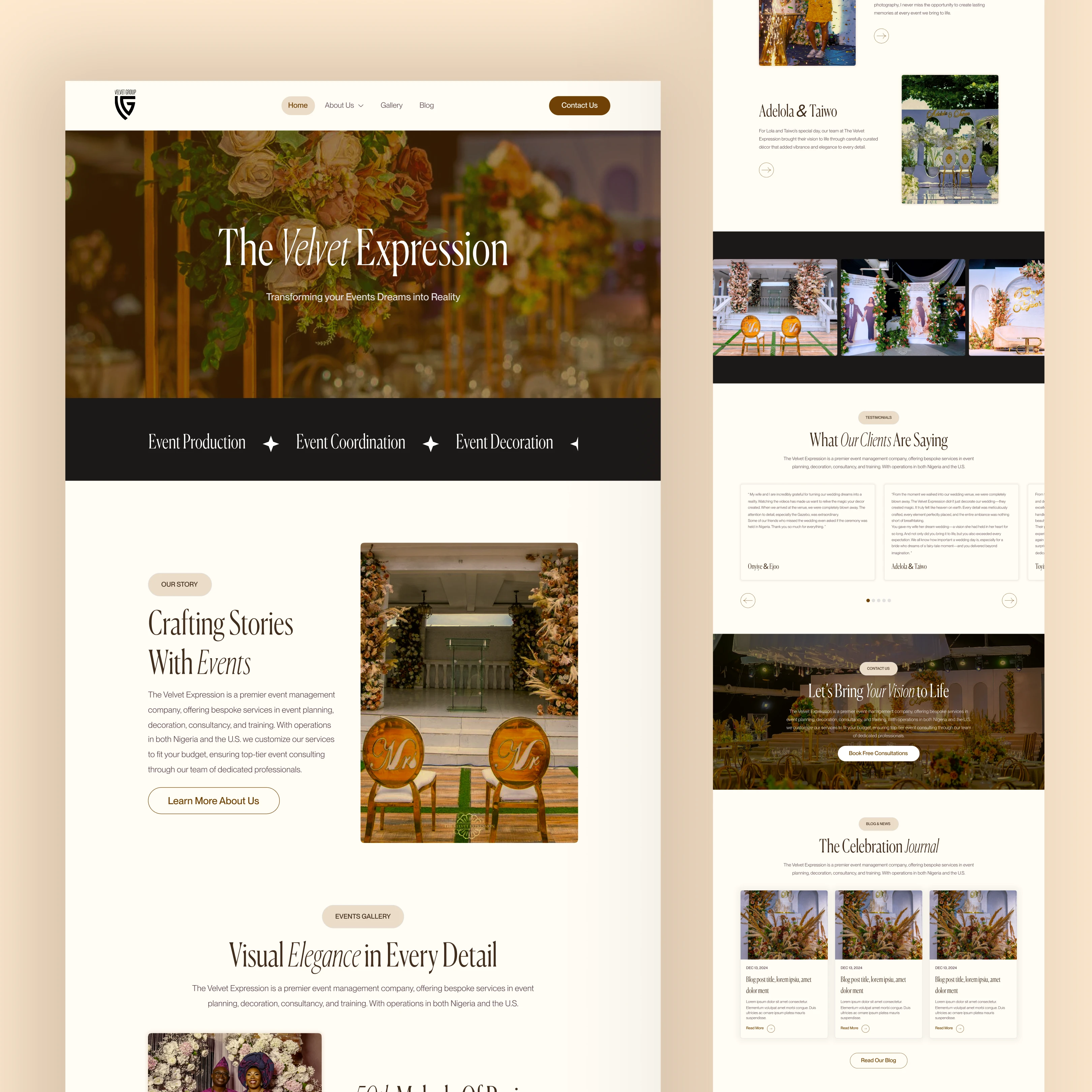 I designed a modern and elegant website for The Velvet Expression, a brand that blends interior styling with unforgettable event planning.