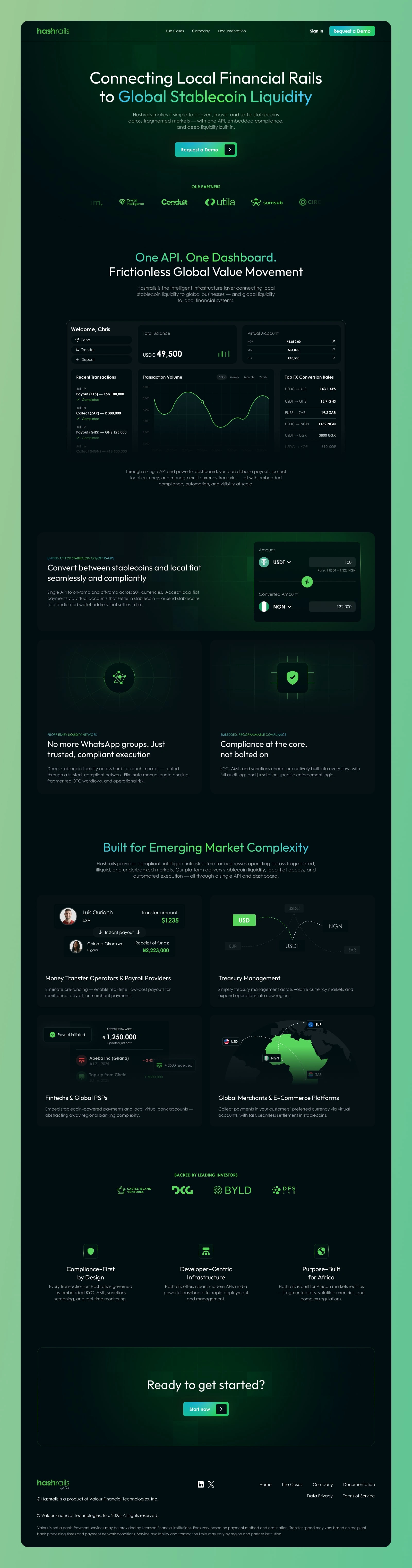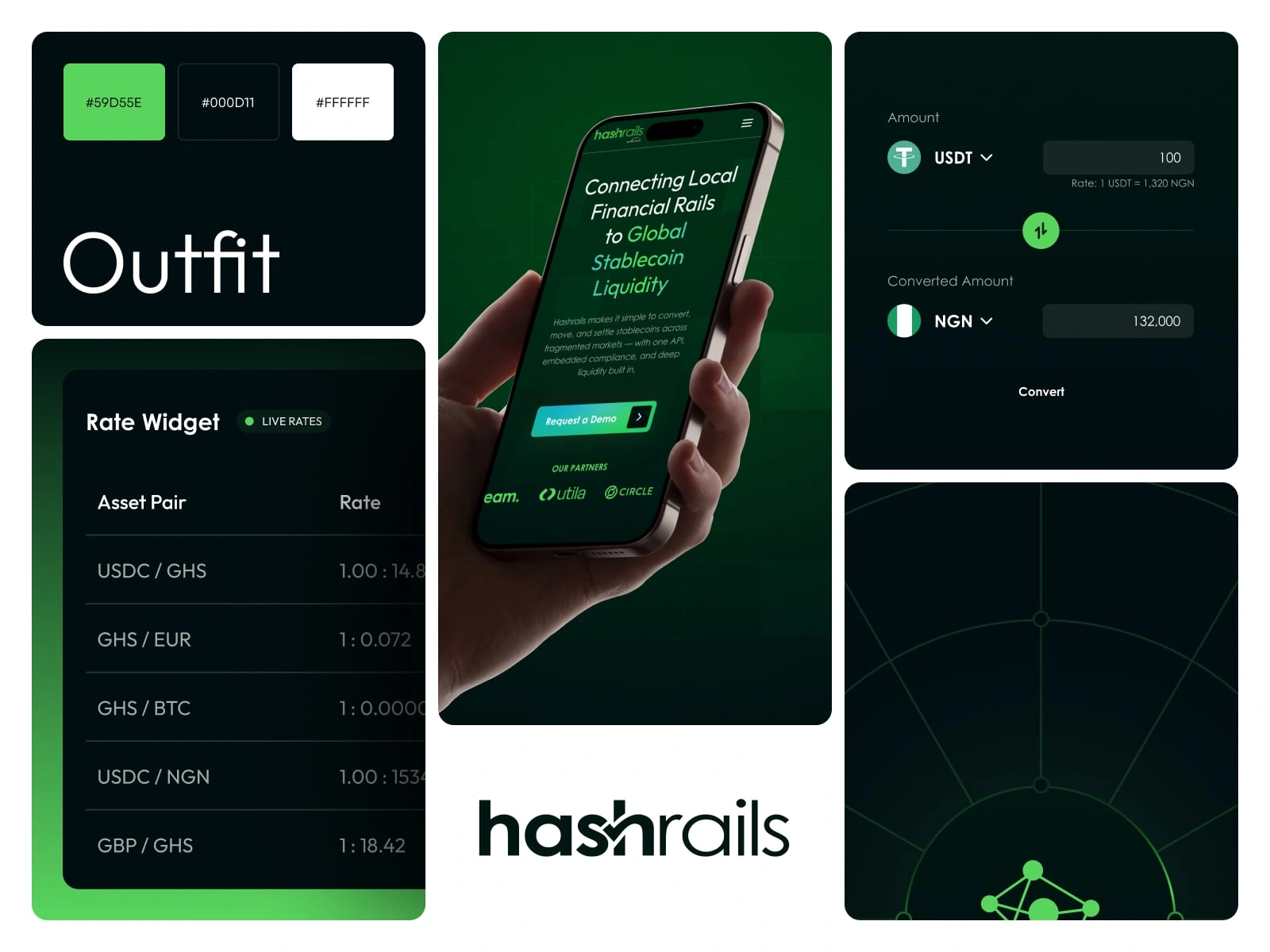 UI/UX design for a fintech SaaS platform connecting local financial rails to global stablecoin liquidity. Designed in Figma with a focus on compliance, security, and user-friendly dashboards. Features include transaction monitoring, real-time FX conversion, portfolio tracking, and API-driven integrations. Clean dark UI with green highlights reflects fintech innovation and trust.