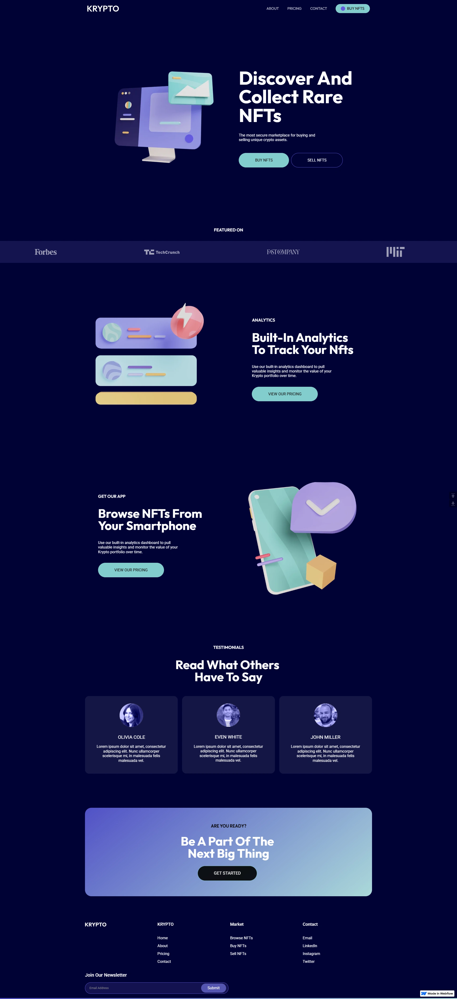 I developed a sleek and responsive landing page for Krypto, a crypto-focused platform, using Webflow. The design is modern and engaging, with smooth animations, clear call-to-actions, and a layout optimized for conversions. Built with performance and mobile responsiveness in mind, it delivers a seamless user experience across all devices.