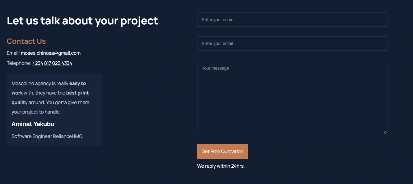 Brand Consistency: Ensured that all design elements, typography, and color schemes were consistent with Moscolino’s branding guidelines to create a cohesive and professional look.