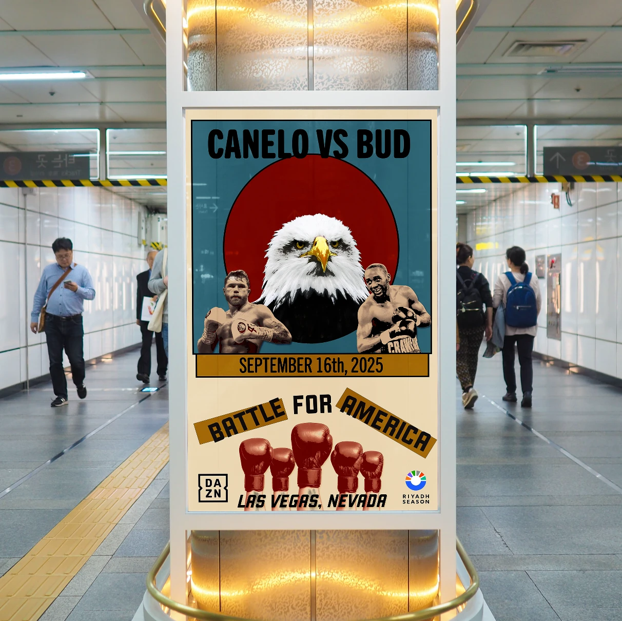 Created a gritty, vintage-inspired campaign for Canelo vs. Bud using posters, tickets, and merch to build hype and echo classic fight promos.