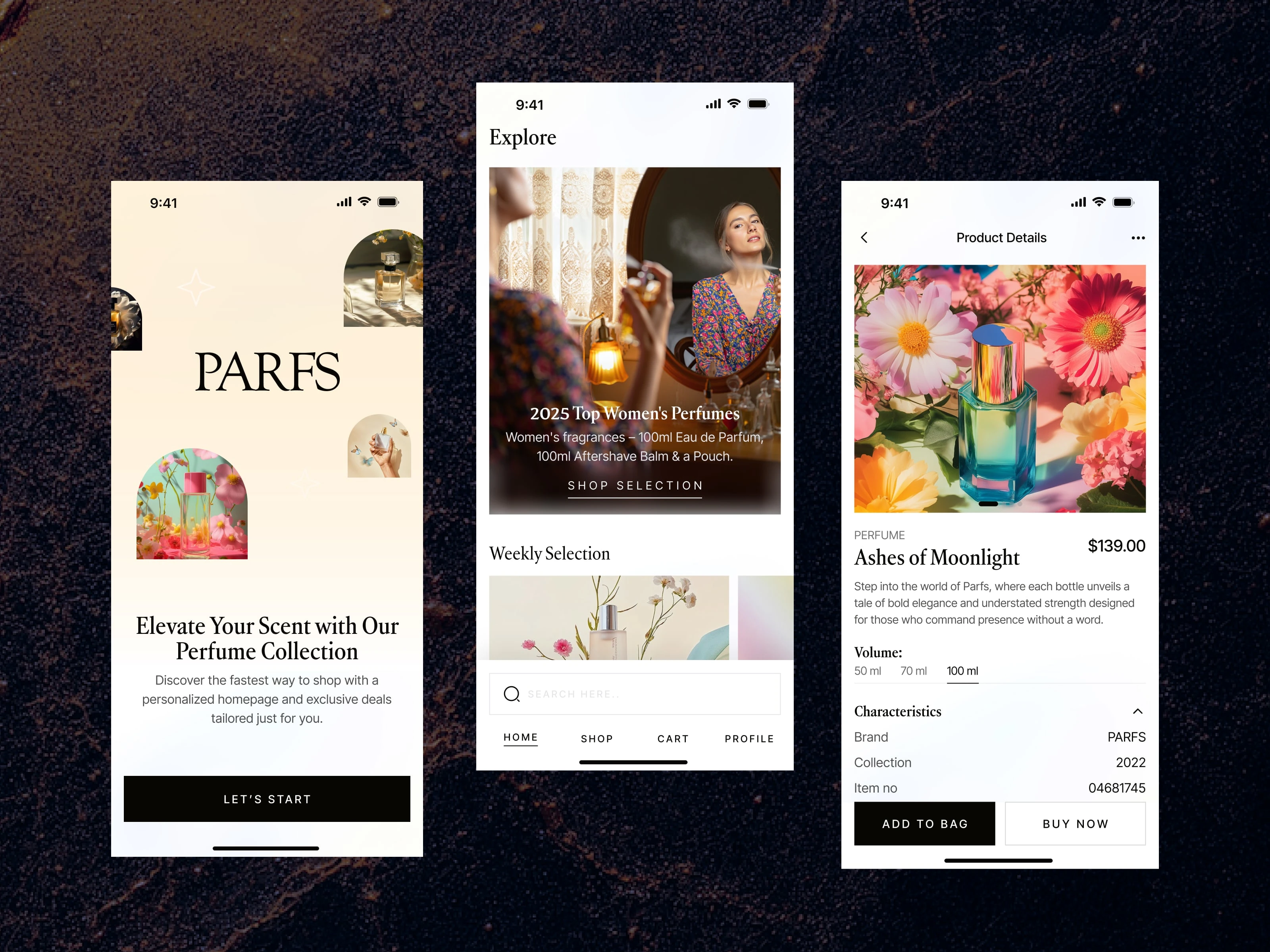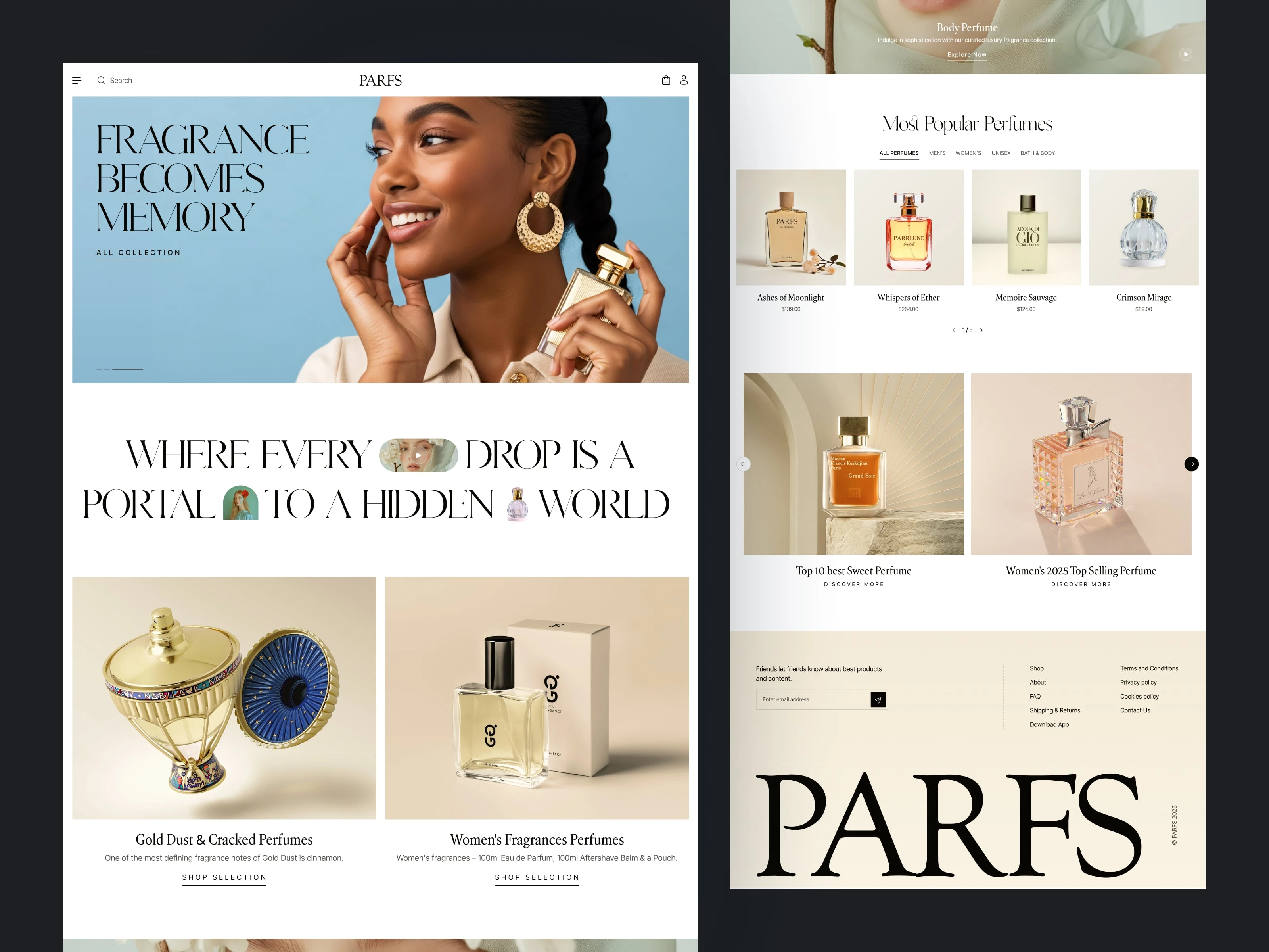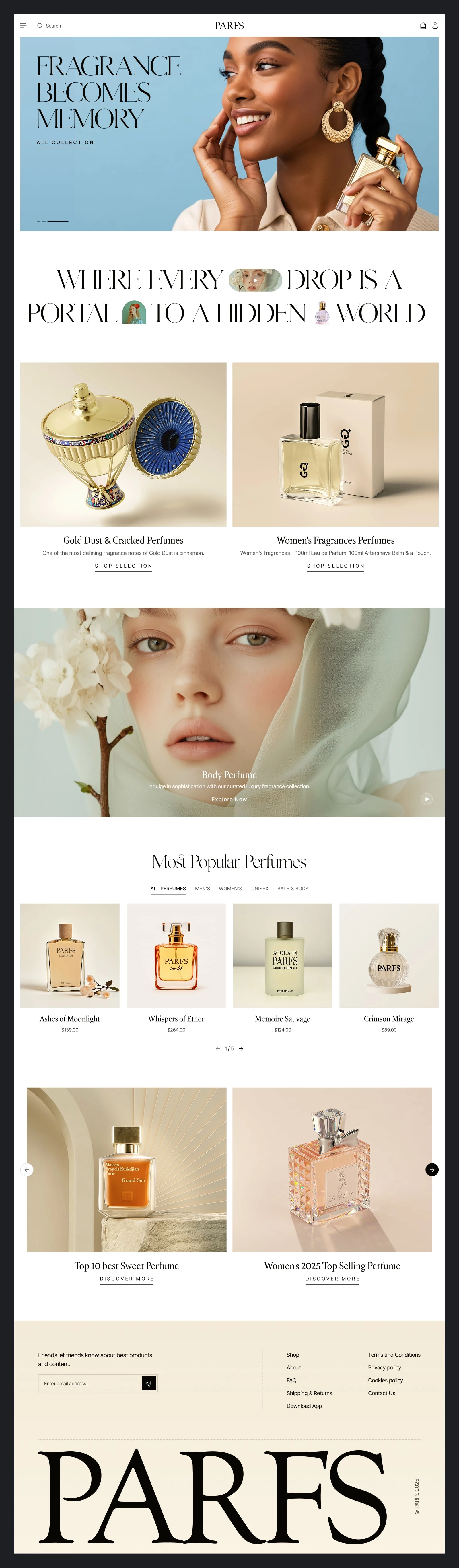 PARFS — Luxury Perfume eCommerce Website and App UI/UX Design