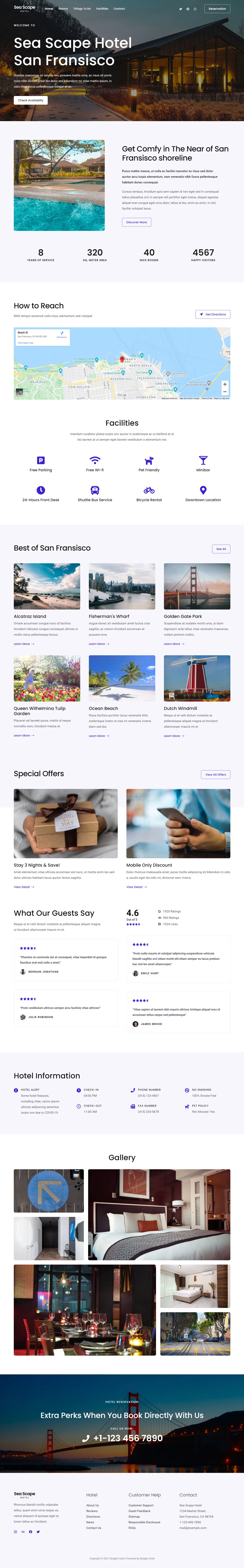 This project is a demo hotel website built in WordPress, created to demonstrate how hospitality businesses can establish a strong and user-friendly online presence. The concept showcases a modern, elegant design tailored for hotels, resorts, or guesthouses that want to highlight their facilities, nearby attractions, and booking options.