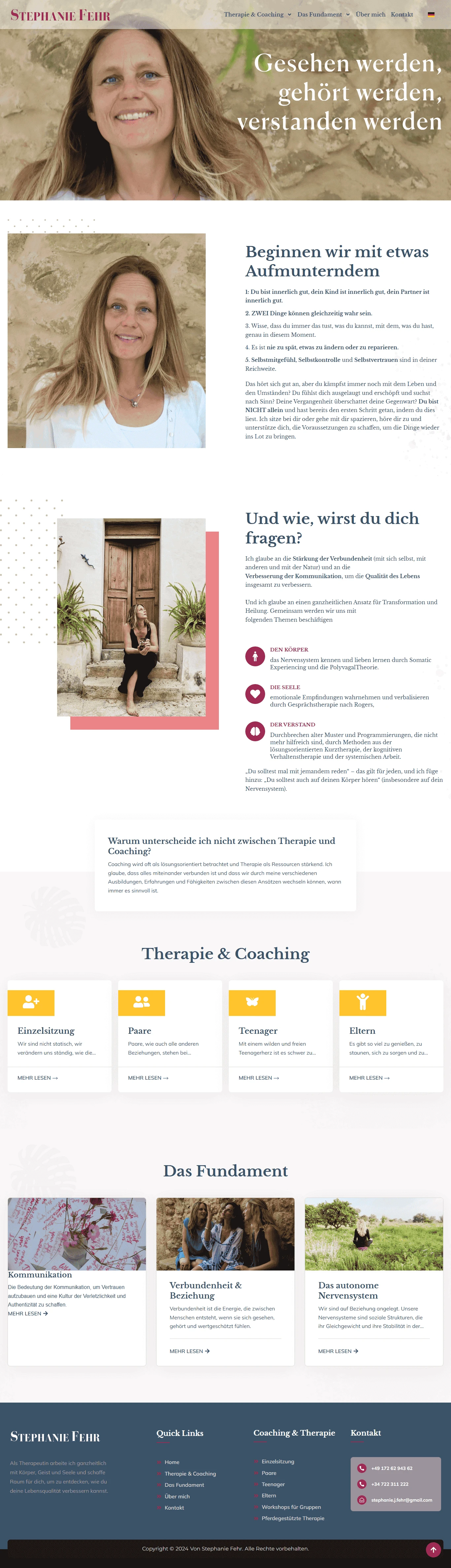 Contact form, phone number, email, social media links, and Google Maps integration.