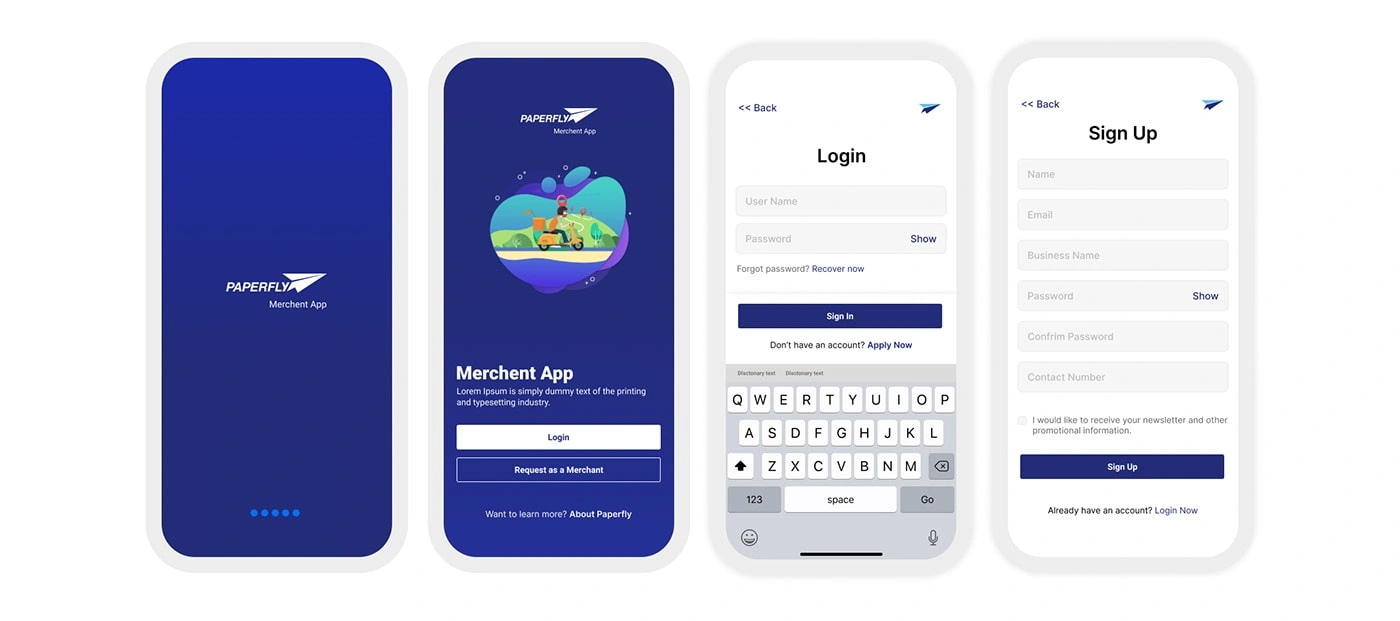 1. A unique color pattern was selected to distinguish the Merchant App from the Paperfly brand.
