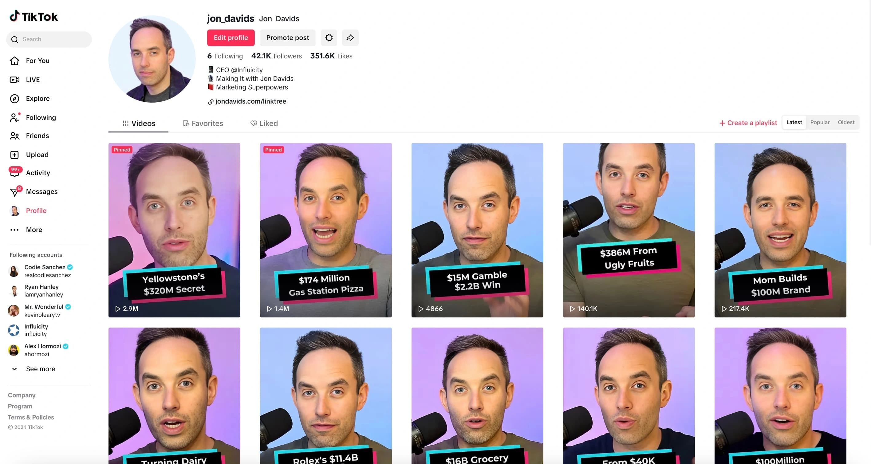 I helped Jon Davids achieve 6.3M TikTok views (+309%), 27K new Instagram followers (+9%), and 105.9K YouTube Shorts views (+40%) in November 2024. 🚀