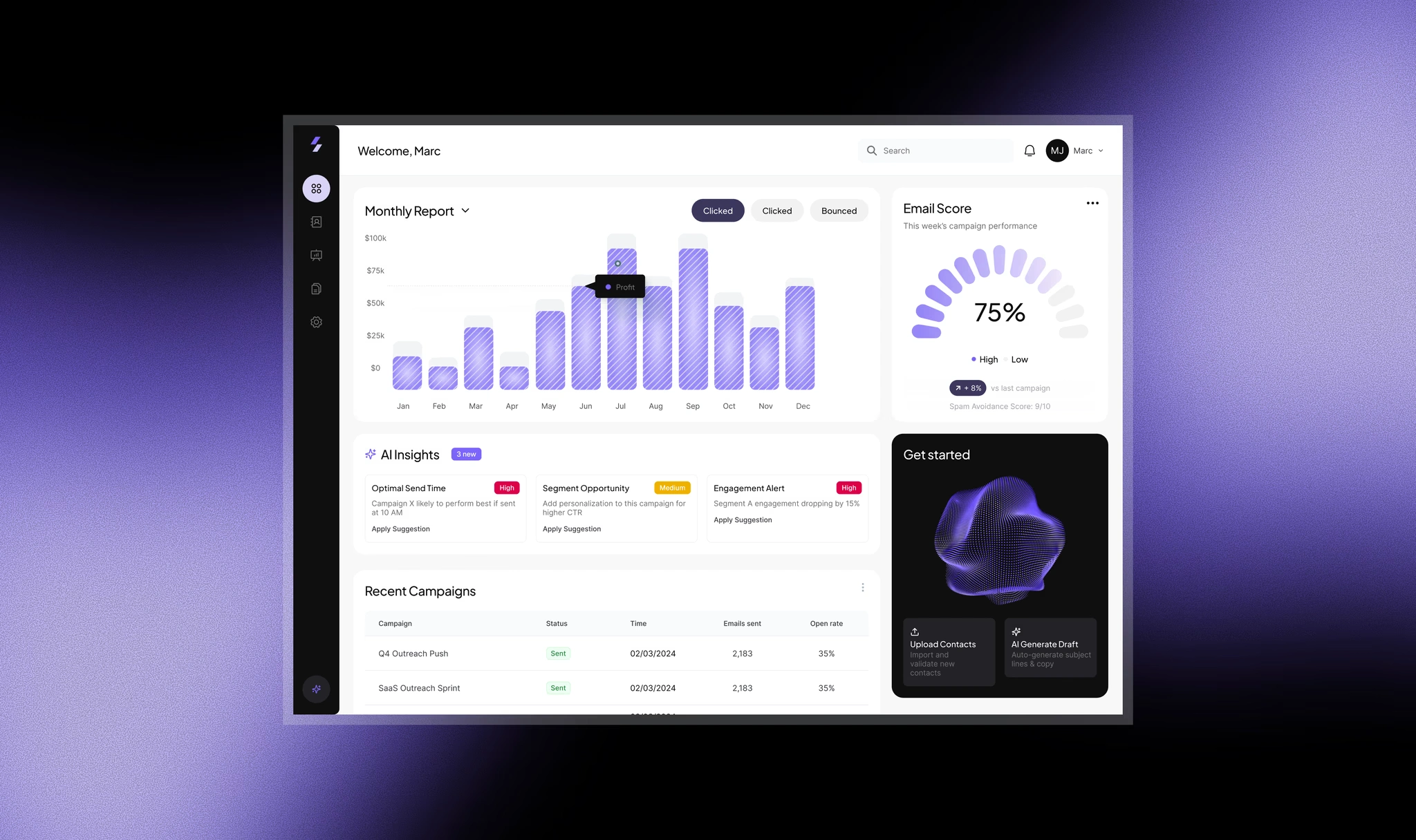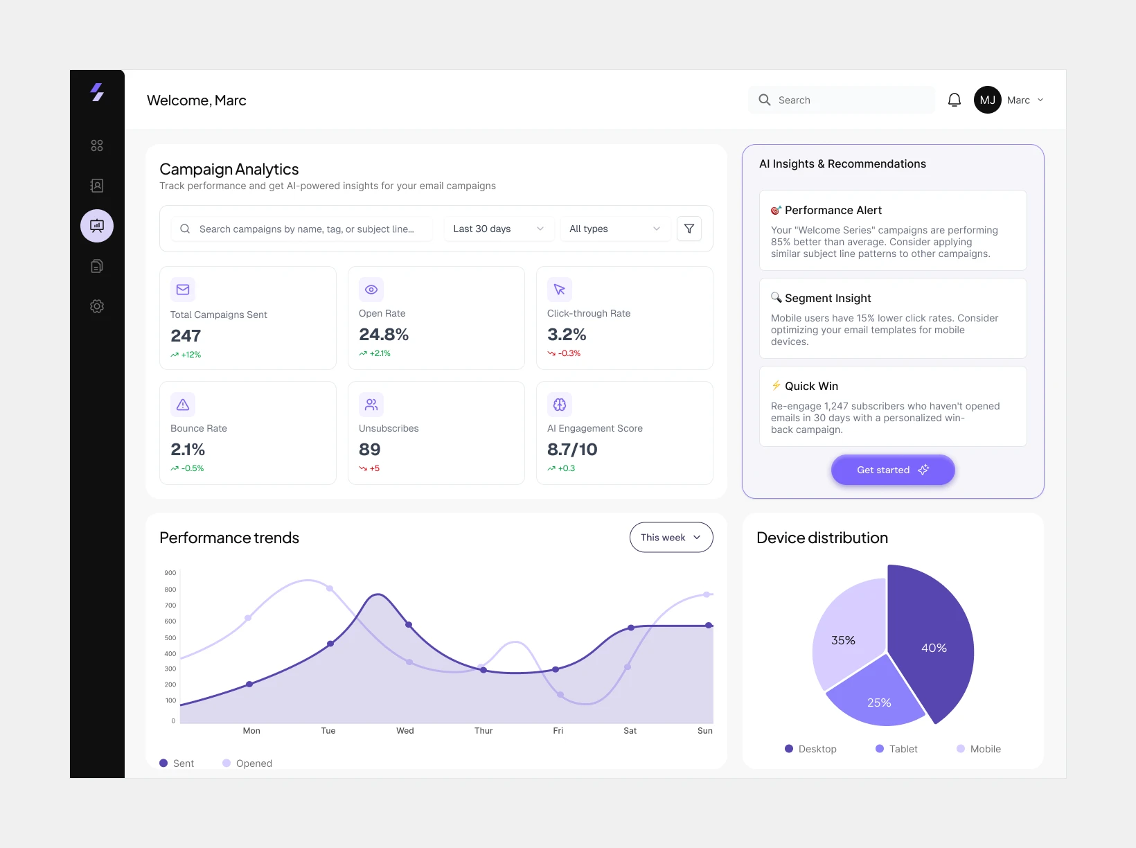This project explored how AI could fundamentally change the way businesses create and send email campaigns. The platform was designed to help growing teams move beyond slow, generic newsletters and into a system where personalization, speed, and insight are built in by default.