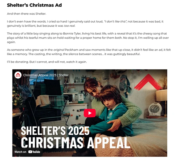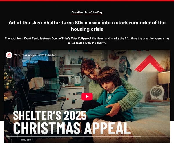 Shelter's 2025 Christmas campaign, titled "Holding on for a home," highlights the issue of families living in temporary accommodation this Christmas. The campaign features a film centered on a boy who loves singing Bonnie Tyler's "Total Eclipse of the Heart," but the heartwarming scene reveals a devastating twist: his mother is on hold with an accommodation service, with the song playing as hold music