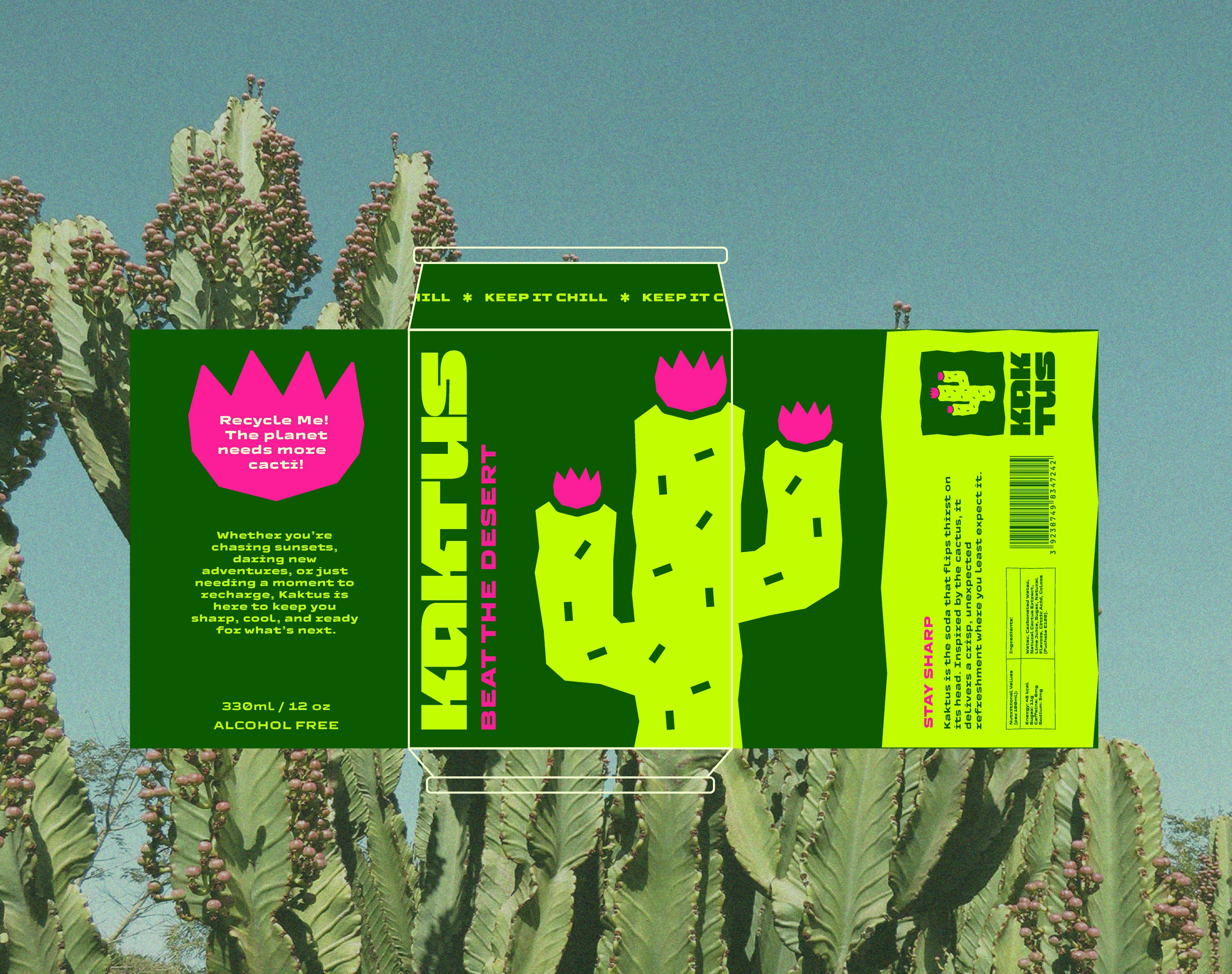 Kaktus is a soda brand that thrives where others don’t. Bold, refreshing, and built to stand out. Inspired by the resilience of the cactus, Kaktus delivers an electrifying burst of flavor wrapped in a visual identity that refuses to blend in.
