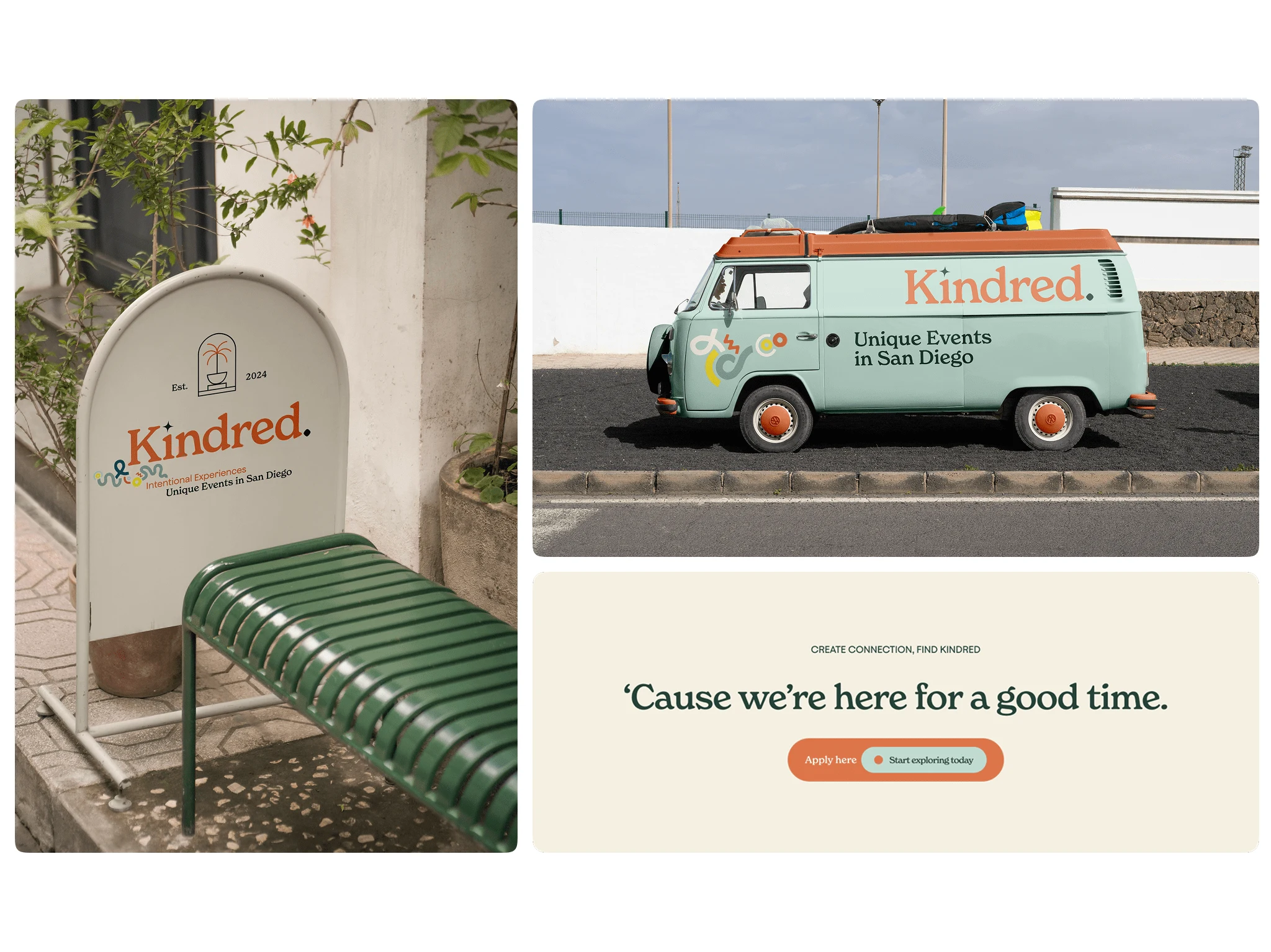 Brand identity and website for Kindred a community focused on creating amazing curated experiences for women to connect and have fun.